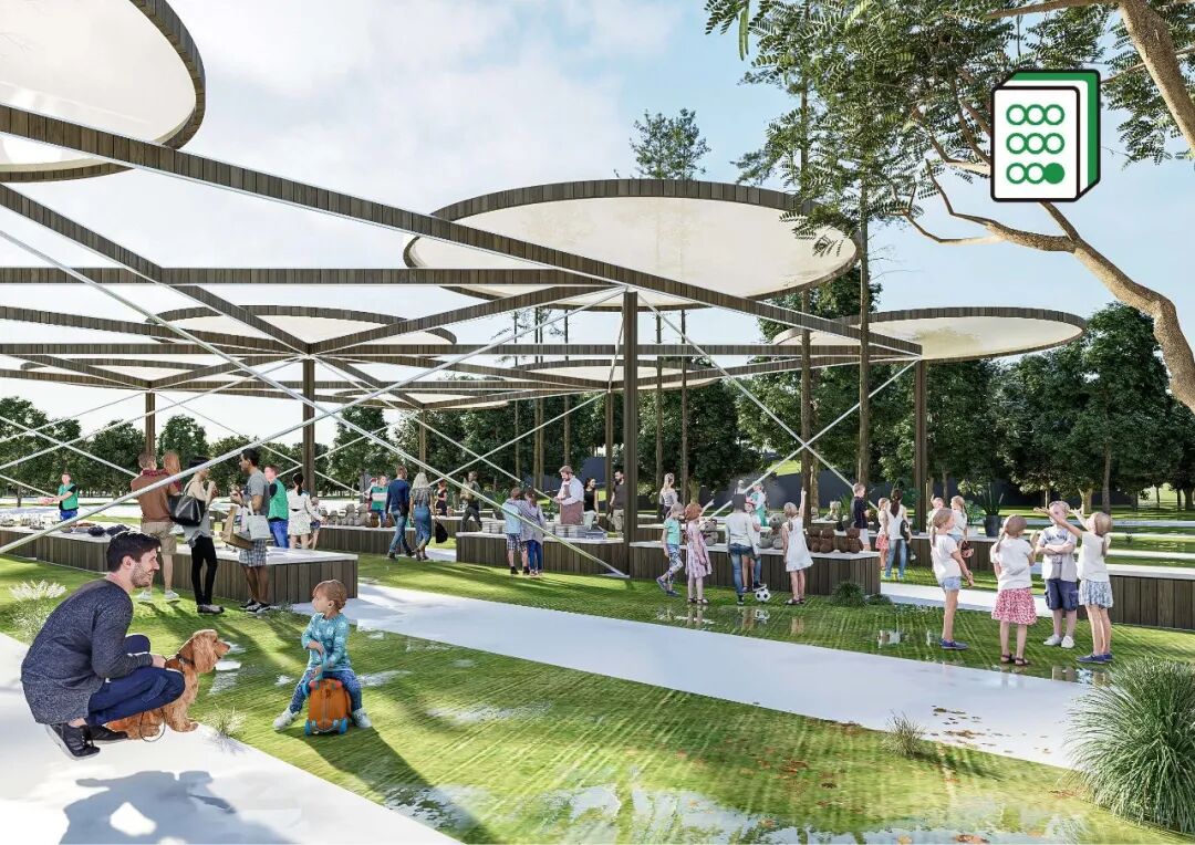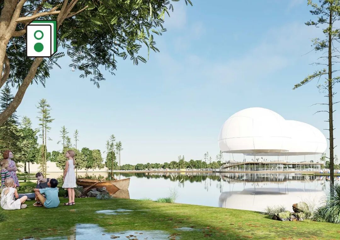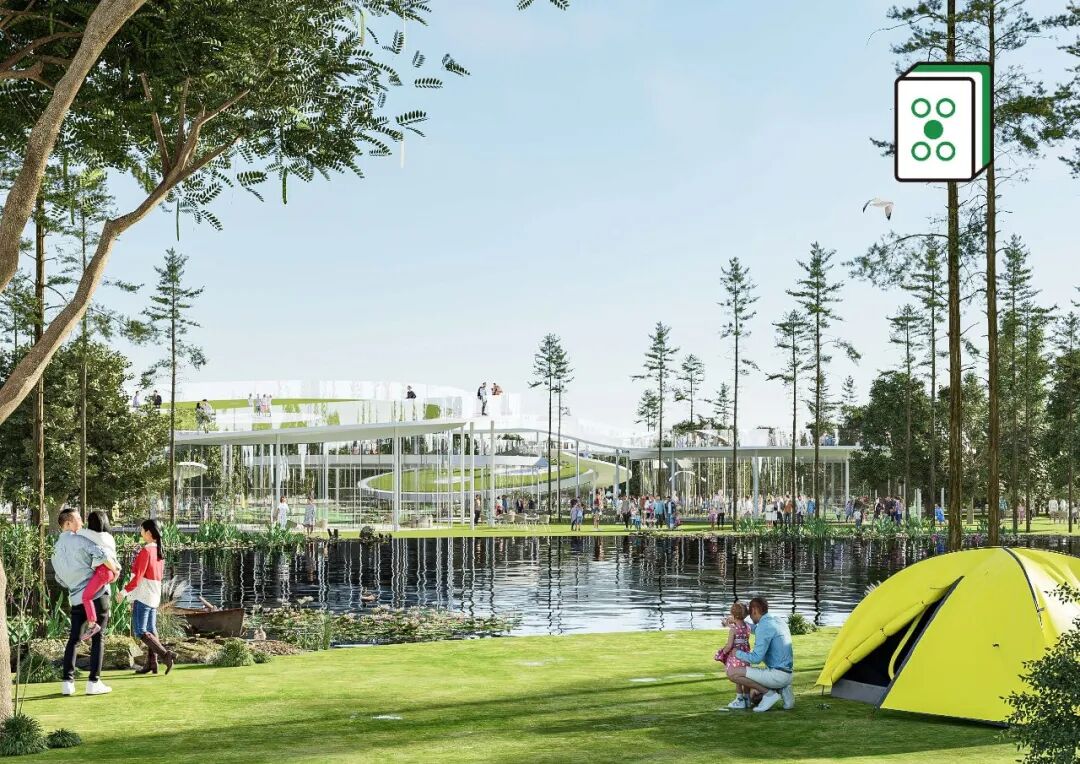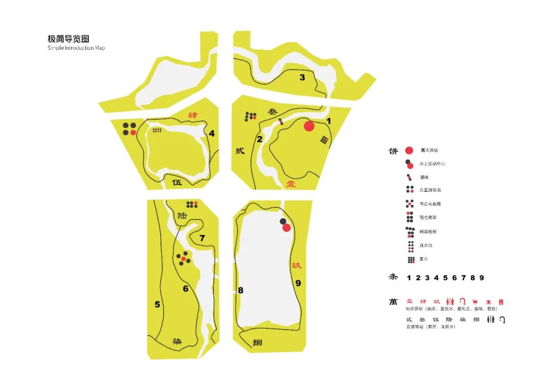 我们将经典的凯文林奇五要素和城市经典IP结合,重构了一套符合智能时代的认知系统。在蓉漂人才公园,高架道路塑造“边界”,大草坪大湖是清晰的“街区”,而麻将中的饼、万、条则用来定义原本模糊的“标识”、“节点”和“路径”。