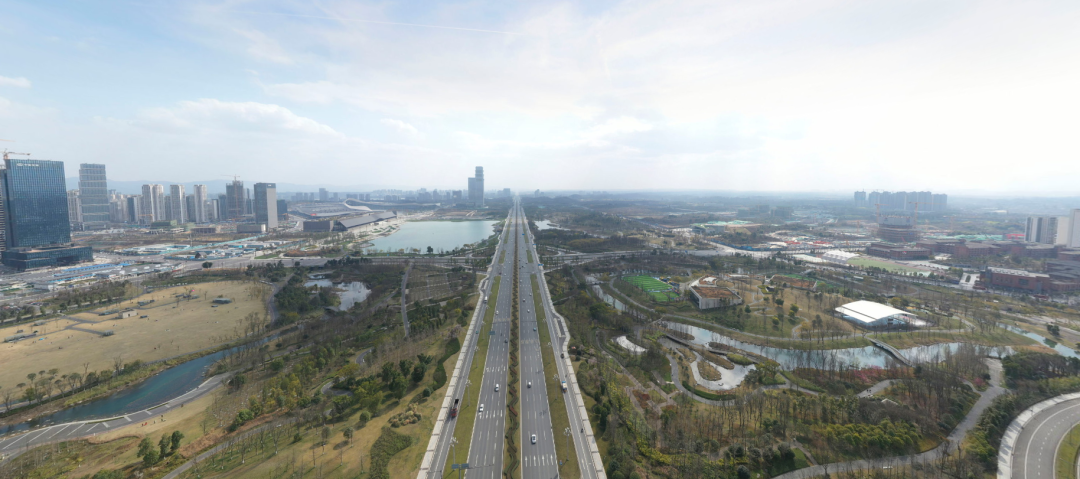 从空中鸟瞰这片CBD区域,俨然如规划总图般严谨秩序,可能是影像图最像“现代主义”规划总图的城市之一。天府公园位于天府新区CBD中心,占地面积约1.5平方公里,空间结构清晰、设计施工精致、日常维护精心、生态环境优美。