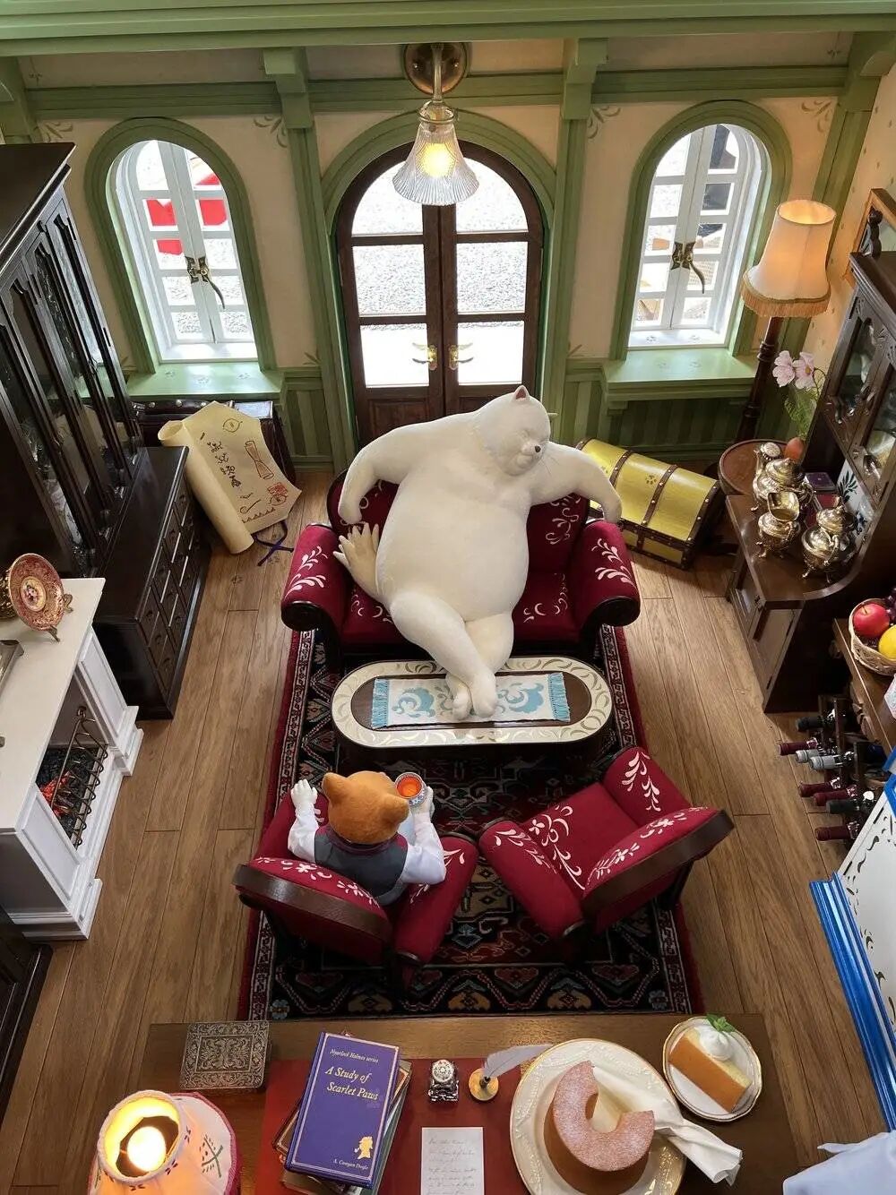 阿莉埃蒂家里的小物件被等比例放大,做成巨型景观,走进其中,游客身体仿佛随之缩小,满眼皆是“拇指姑娘”阿莉埃蒂的视角。