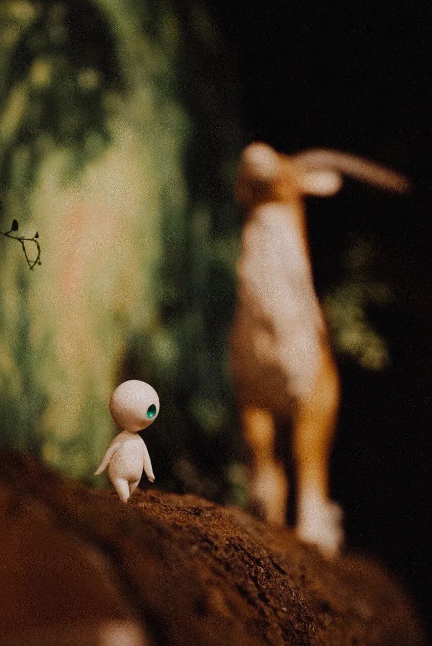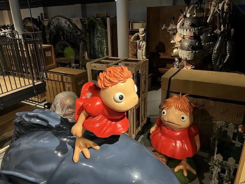 一片灯光昏暗的区域,堆满形形色色的吉卜力动画形象模型,仿佛某个突然被发现的陈旧仓库,暗暗述说着昔日的辉煌与沉寂。