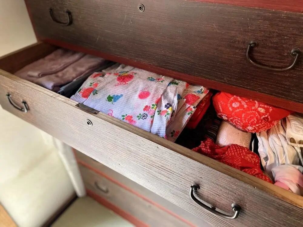 打开小梅家的衣柜,你会发现里面塞满了姐妹俩的衣服,大小合适,花样也正是当年流行的款式。