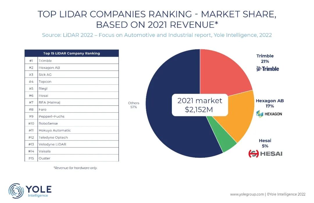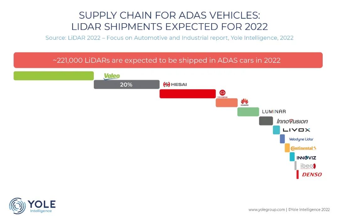 说是“冠军”并非溢美之词,近日,Yole Intelligence,全球知名市场研究与战略咨询公司,发布《2022年汽车与工业领域激光雷达报告》下称《报告》)。