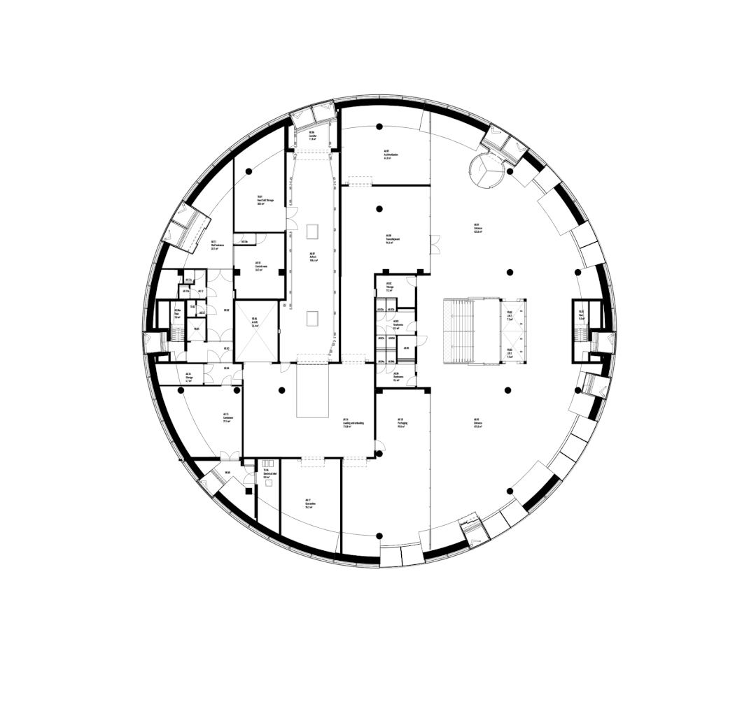 向下收缩的形体可确保地面层穿过博物馆公园的视野和通行流畅无阻,也能够有效地减少对地下水缓冲区的影响。