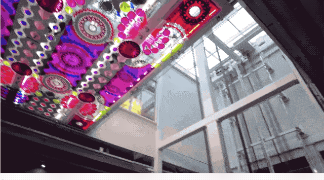 Pipilotti Rist在室外设计的灯光装置也为夜晚的艺术仓库带来勃勃生机。