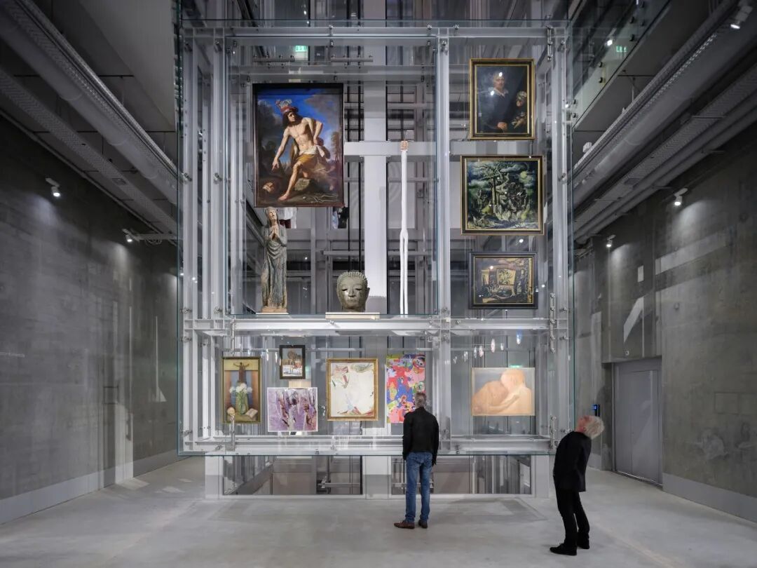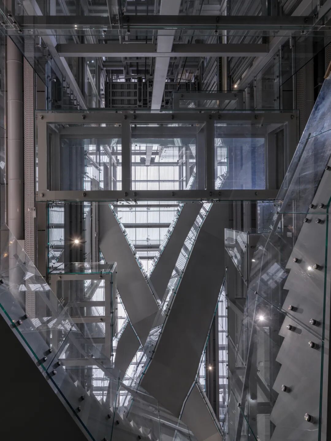中庭是建筑内部最引人注目的空间,通过纵横交错的楼梯与存储空间的通透开窗,参观者能够在360度的范围内观看博物馆的藏品,享受全景式的艺术盛宴。