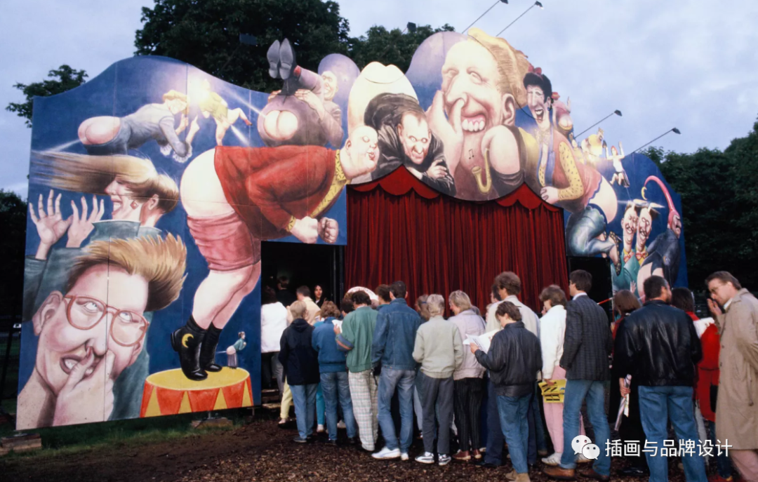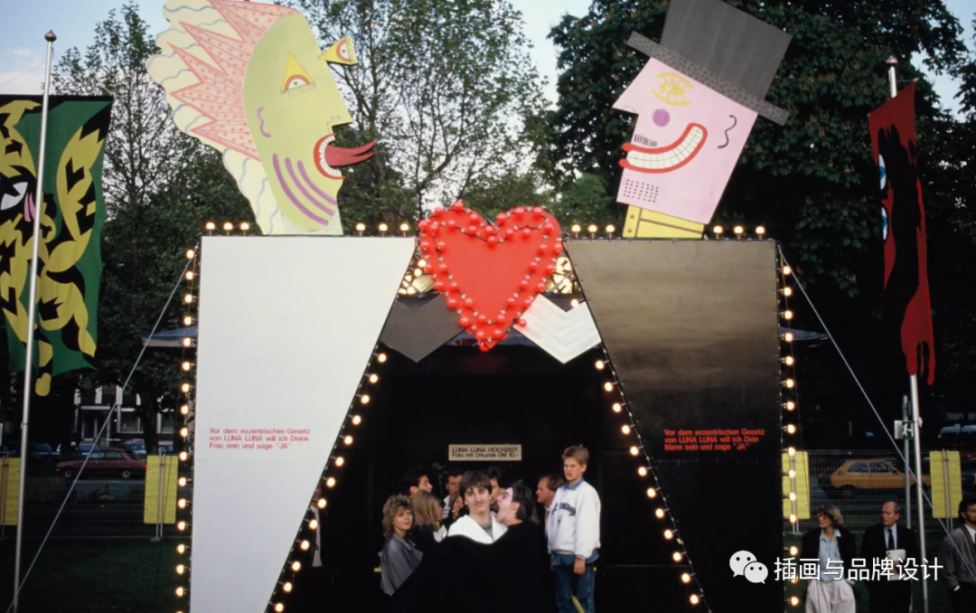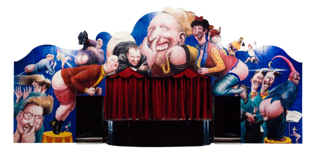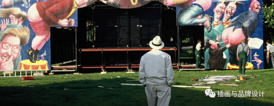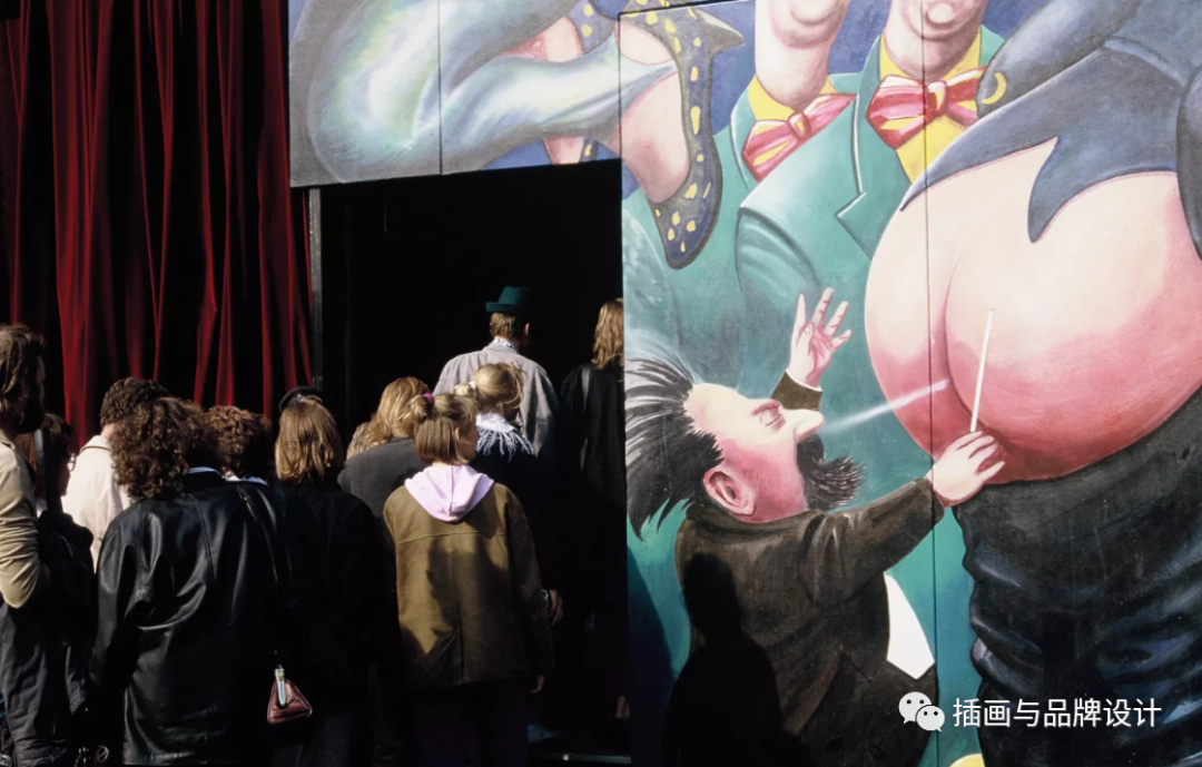 奥地利漫画家戴克斯为乐园舞台帐篷的外立面绘制了荒诞的图片。