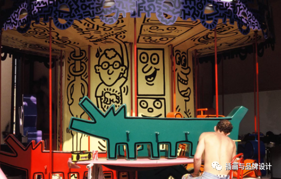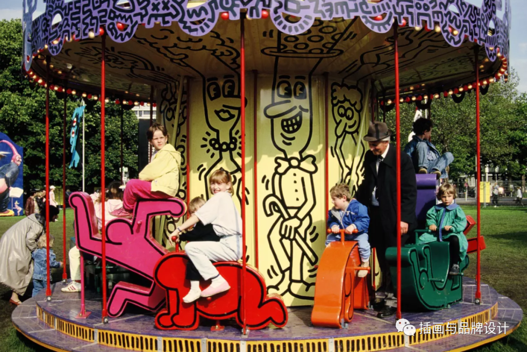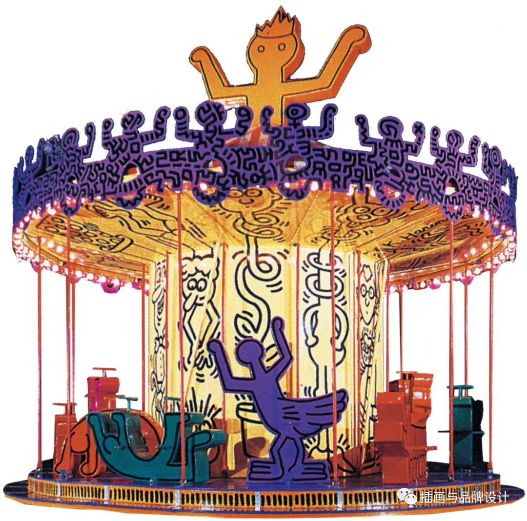 艺术家基思·哈林为乐园设计了一个色彩鲜艳的旋转木马,旋转木马上的每一个装置都是基思·哈林亲手设计并绘制。