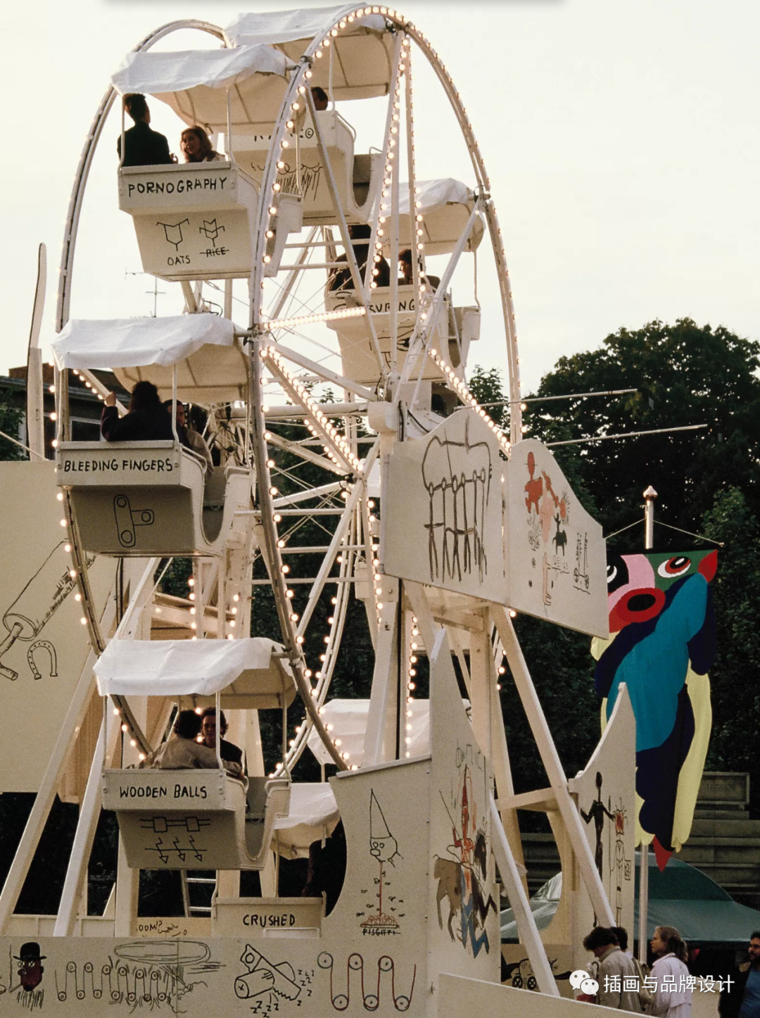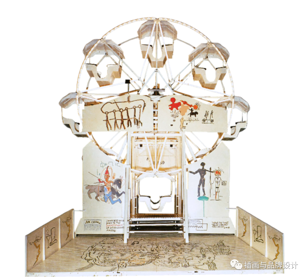 涂鸦艺术家巴斯奎特为乐园设计了一个摩天轮,上面绘制了他早期作品中反复出现的主题。