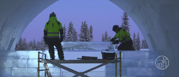 每年3月份左右,当地就会开始储存1万吨的冰块和3万吨的雪,直到11月份才开始建造酒店。而到来年4月末天气转暖,酒店也随之融化,消融的水重新回到托尔讷河的怀抱,完成一个轮回。