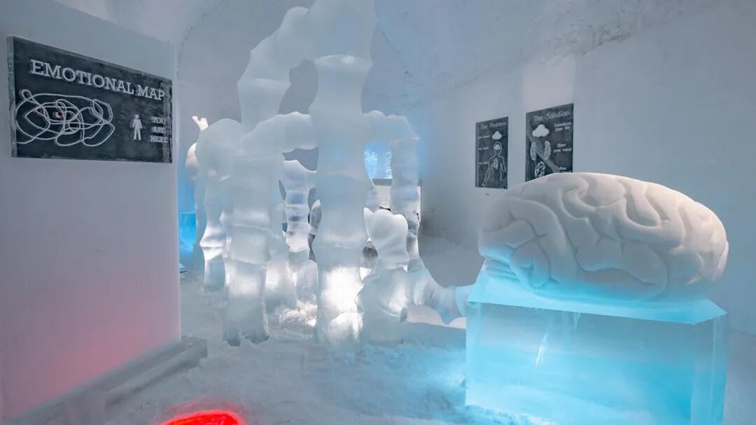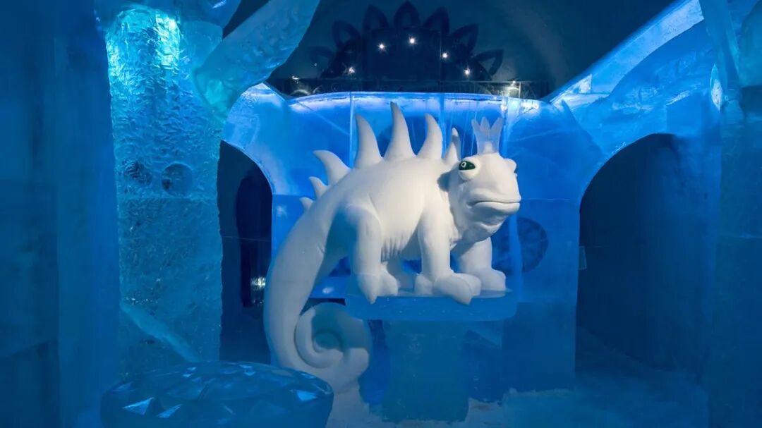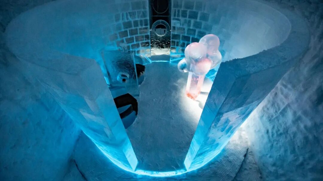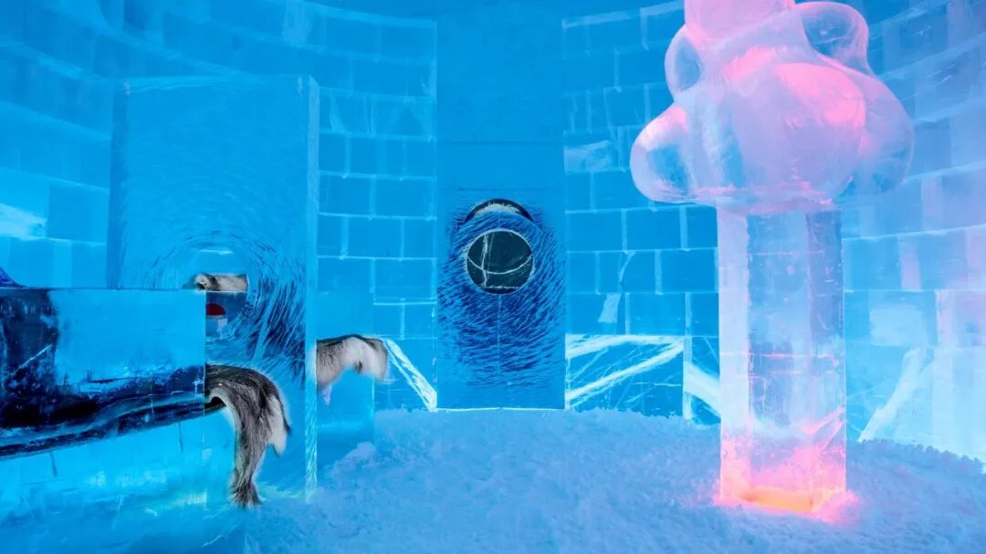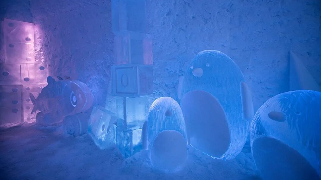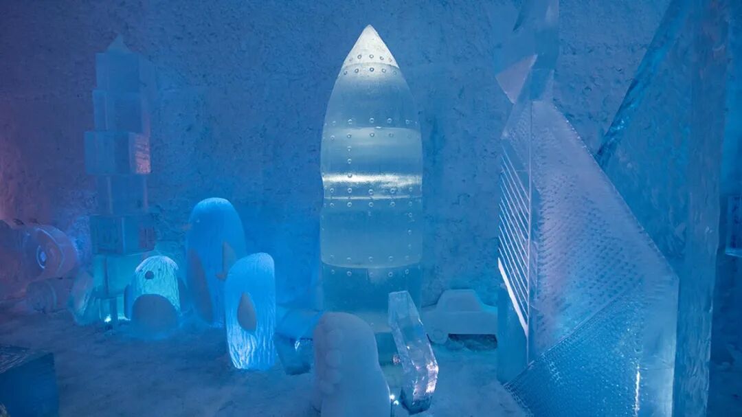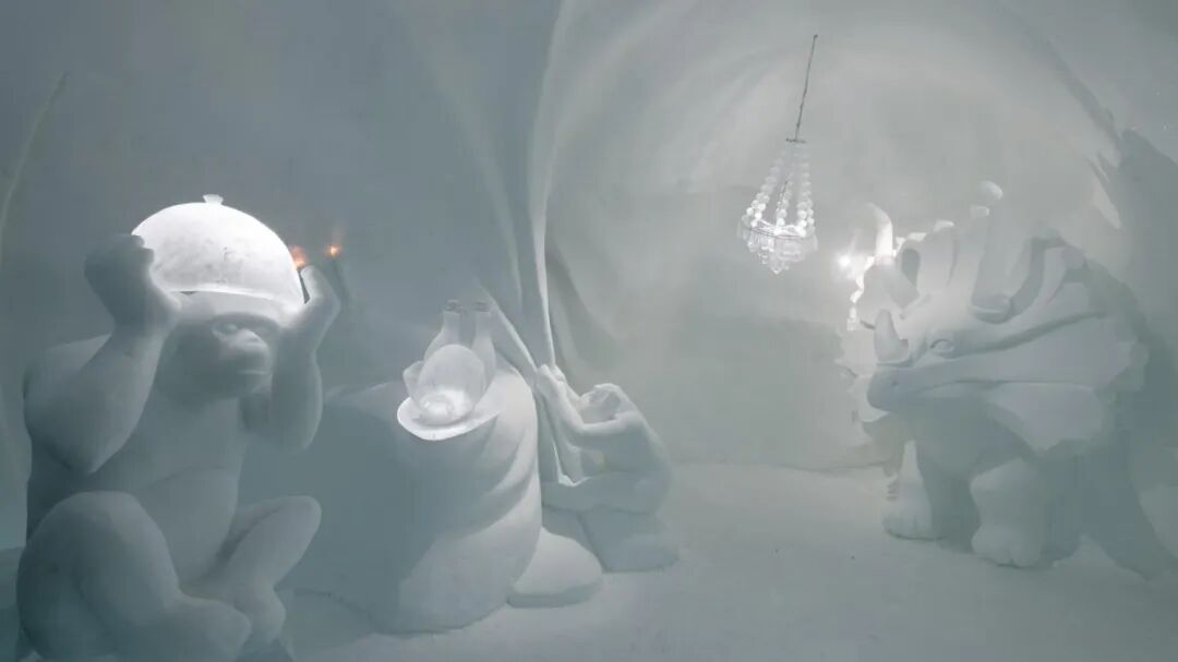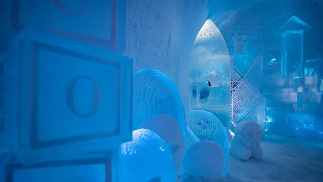 欢迎来到冰冻世界,这里充满了能唤醒童心的玩具。躺在床上,让自己在背景音乐《一闪一闪的星星》的旋律中入睡。在床的上方,一只由雪创造的巨大兔子整夜守护着。这只兔子的耳朵每只重75公斤。