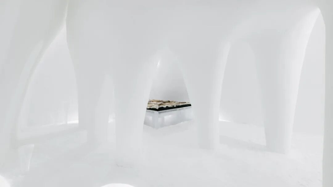 带着一种探索自然及其深邃元素的冲动,你踏上了未知而短暂的土地。在你面前,是一条蜿蜒的小路,两旁是巨大的冰月牙,高度和比例各不相同。就像受到地心引力的牵引,你被吸引了进去,波浪形的通道每走一步都会改变你的感知,直到旅程结束在床前。