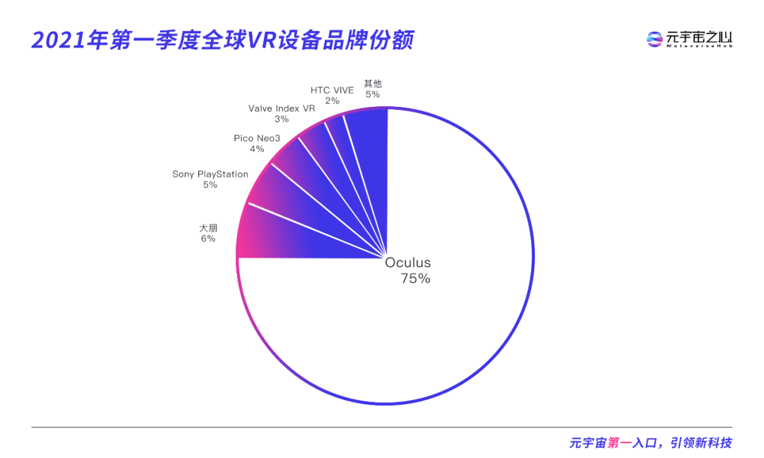 我们在上文中为大家简单介绍了过去几年VR市场的整体发展情况,那么让我们来看一下当前具体VR设备的发展情况。我们仅以Counterpoint发布的2021年第一季度全球VR设备品牌份额排行榜作为参考,盘点当前全球主流VR设备。