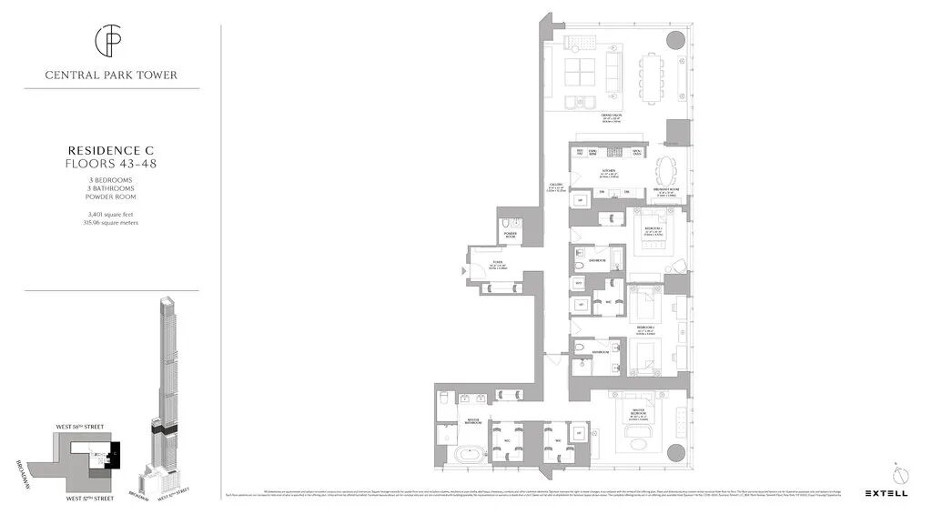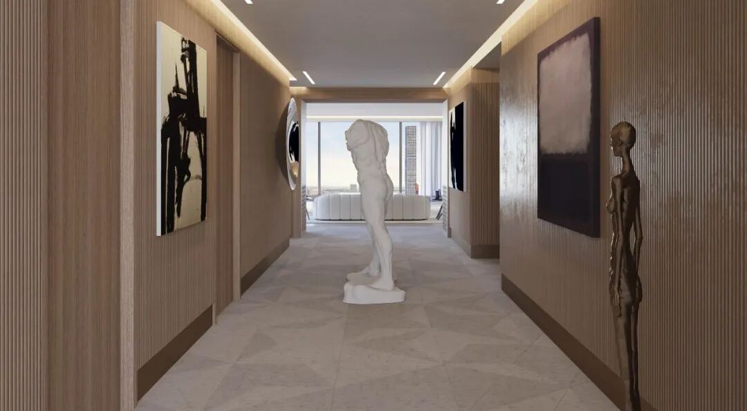 公寓楼的外部结构出自著名建筑事务所 Adrian Smith + Gordon Gill Architecture 之手,钢结构覆盖着玻璃,闪耀在曼哈顿的天际线中。