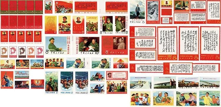 “文化大革命”邮票(简称“文革”邮票)记载着特殊时代镌刻下的特殊烙印。从1967年4月19日发行的第一套“文革”邮票《战无不胜的毛泽东思想万岁》起,至1970年1月21日发行的后一套“文革”邮票《革命青年的榜样———金训华》止,这期间共发行“文革”邮票19套80枚,另外还有《全国山河一片红》等5枚未发行邮票。