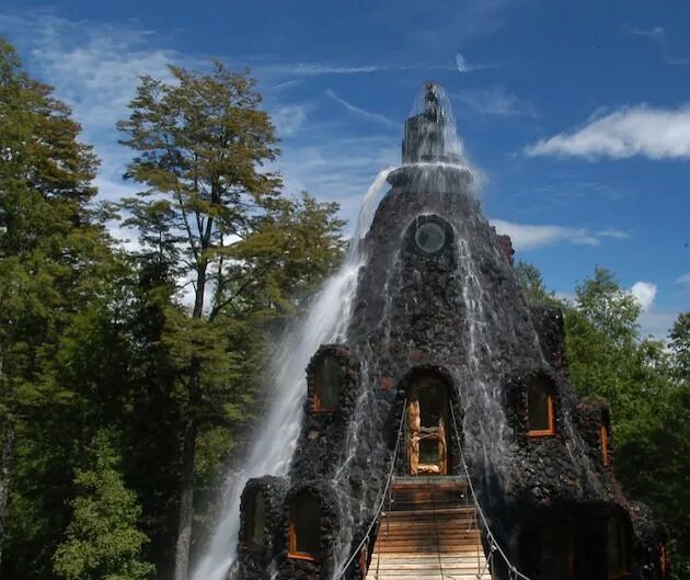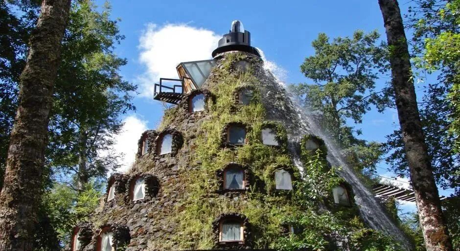 而蒙大拿魔法小屋,就隐藏在这片原始森林的南部。Huilo Huilo 自然生态保护区内,这座形状特别,布满苔藓般的酒店,看起来就像是精灵们居住的地方。因为你能感觉到整个酒店,完全沉浸在热带雨林中,就像有灵气会呼吸一般。