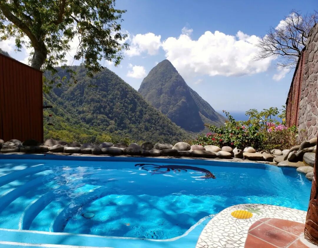 这里的环境与众不同,在位于加勒比海上方1000 英尺的火山脊线上,你可以欣赏到皮通山(Pitons)的壮丽景色。皮通山是多种生物的栖息地,于2004年以「皮通山保护区」被列入世界遗产名录。