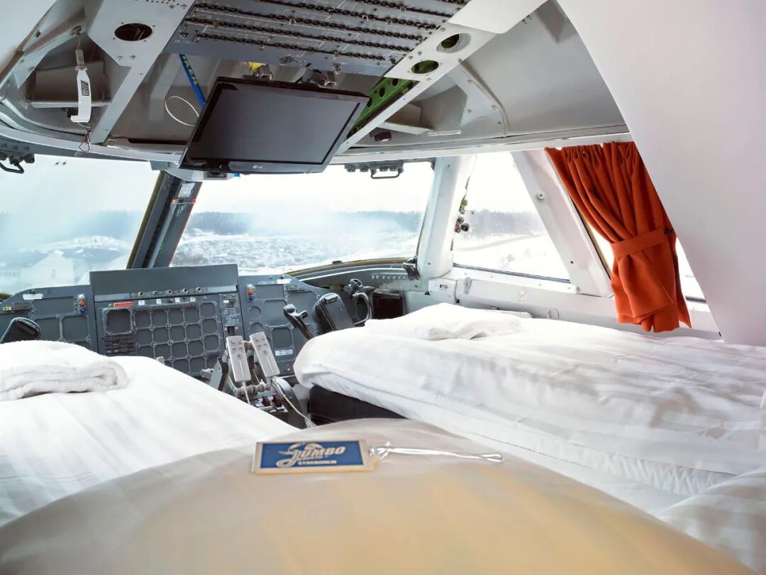 其中最拉风的当属驾驶舱的双人房,属于青年旅舍界的黄金土豪版,价格约1850克朗一晚,这个带单独浴室和卫生间的套间,位于机舱尾部,让游客仿佛睡在云端。