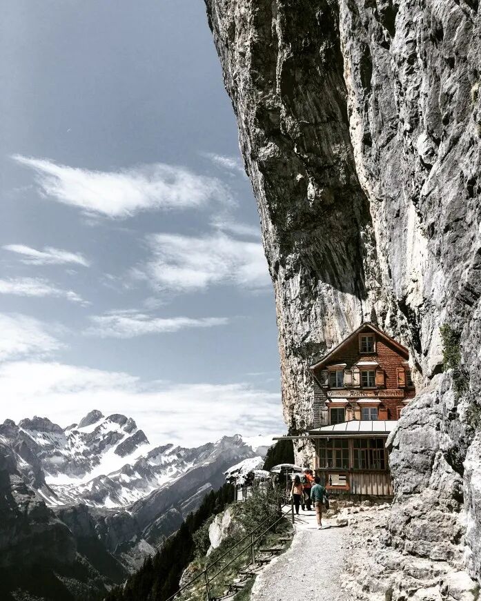 没有比这座建在悬崖上,坐落在瑞士阿尔卑斯山上,拥有 170 年历史的旅馆更完美、更刺激肾上腺素的地方了。