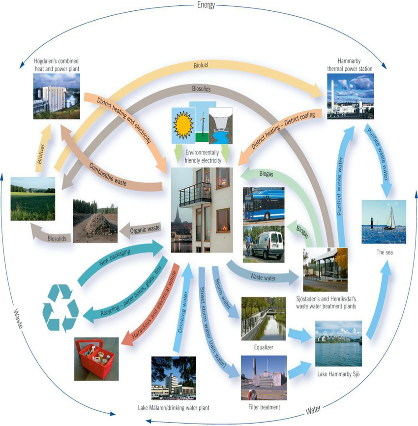此外,哈马比社区使用能源的绝大部分都属于可再生能源,并且来源多样。所有建筑都通过热电厂的垃圾焚烧和污水处理厂的热泵来实现区域供热。