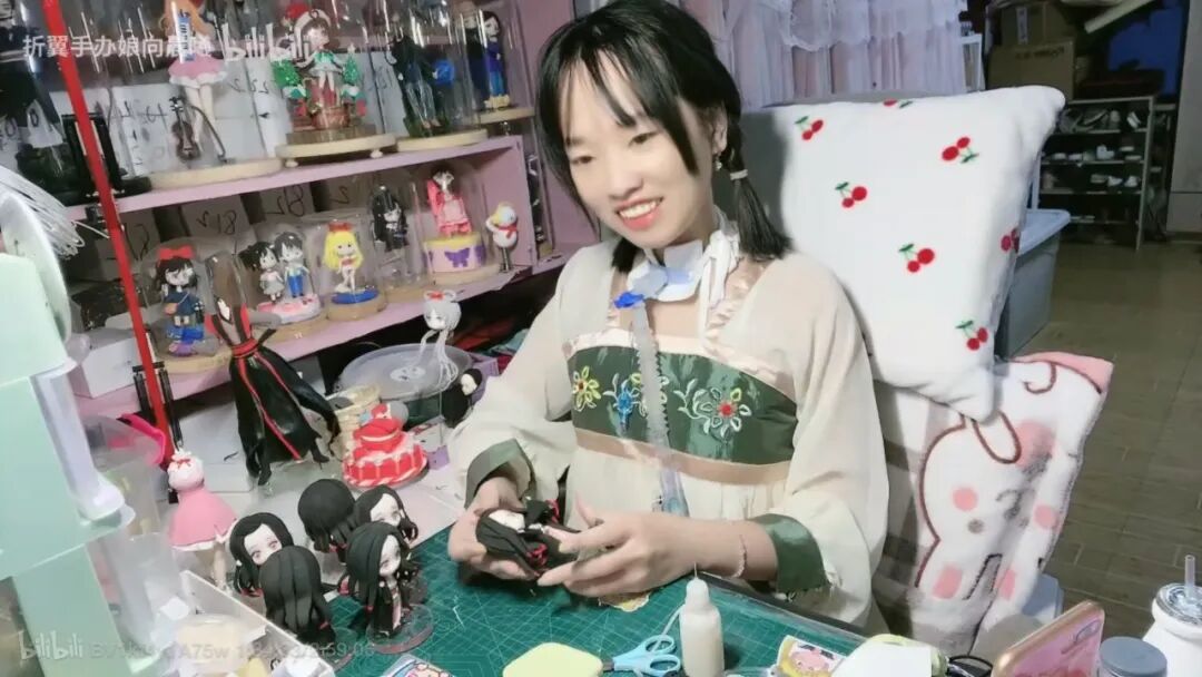 2019年3月,她在B站做直播,线上教学捏粘土。