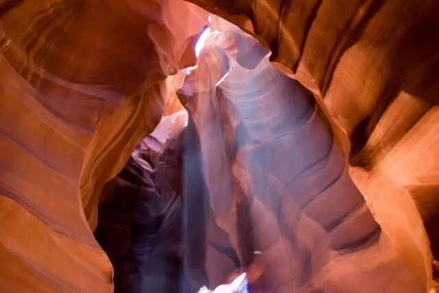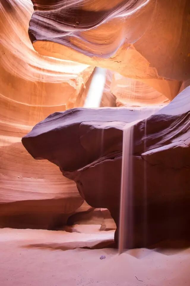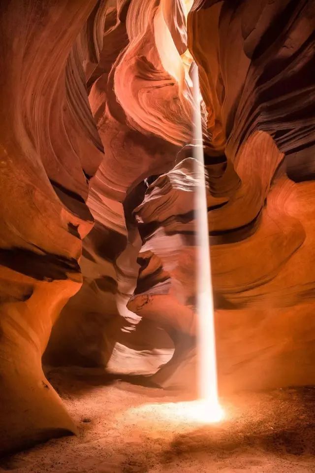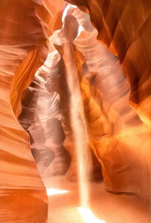 宁静的世界,在这里只有那光与影的舞动,那透过顶部的光束像一道道瀑布飞流直下,扬一把沙,你会收到更加靓丽的风景。