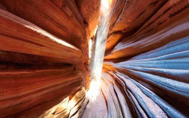 当那阳光通过头顶那细小的缝隙照射进来的时候,形成的光束和那魔幻般的艳丽色彩,宛如梦中想象的奇异世界。