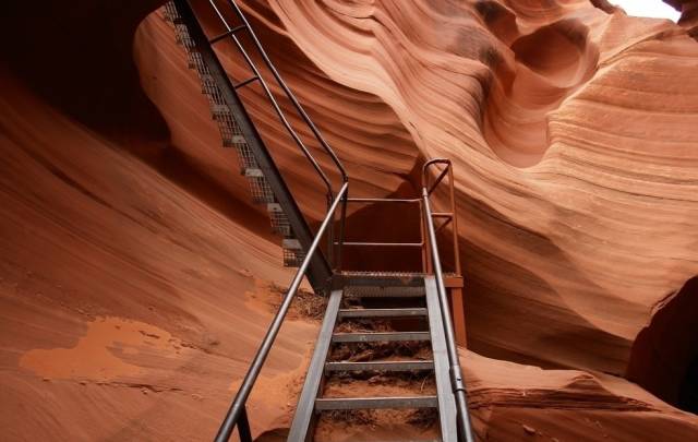 很多时候如果想去下羚羊峡谷你必须爬铁梯,甚至有的地方你必须依靠绳索,所以这里的游客相对少很多,由于通道非常长,一般游客只被允许走到中途点。