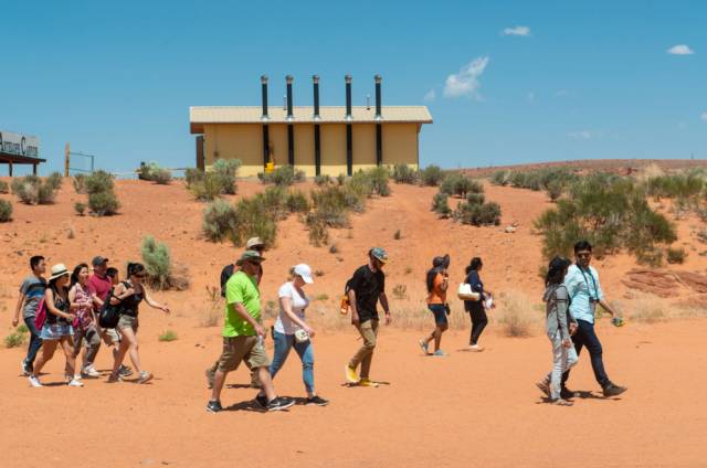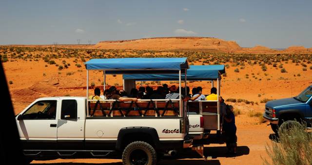 通常情况下上羚羊峡谷由于谷面较宽广,在且位于地面上,所以这里是游客比较多的地方。