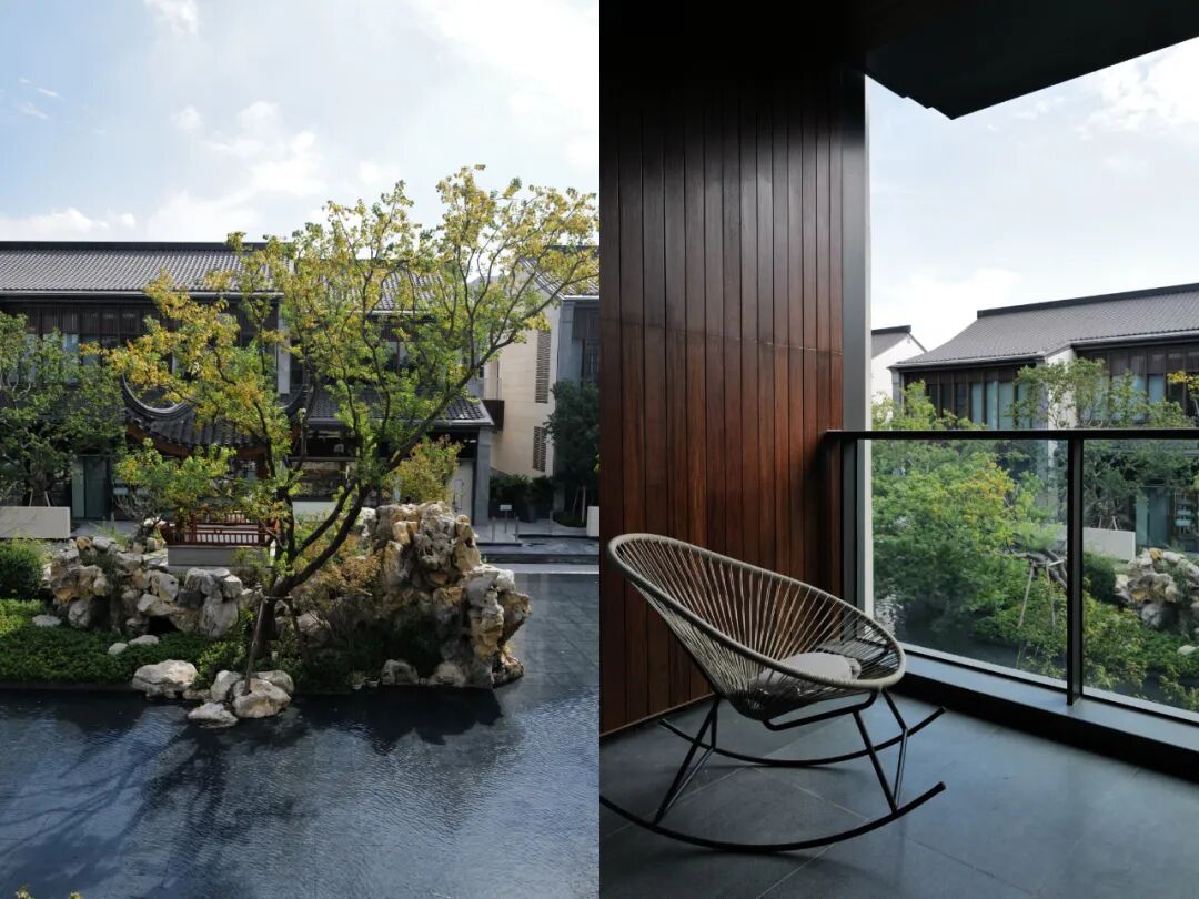 设计为先 苏州金普顿竹辉酒店还有一个例子,大堂坡顶的颜色,取用落日余晖浸润苏州老砖瓦墙的色泽。看似很现代,但实际取自苏州老建筑的在地特质。