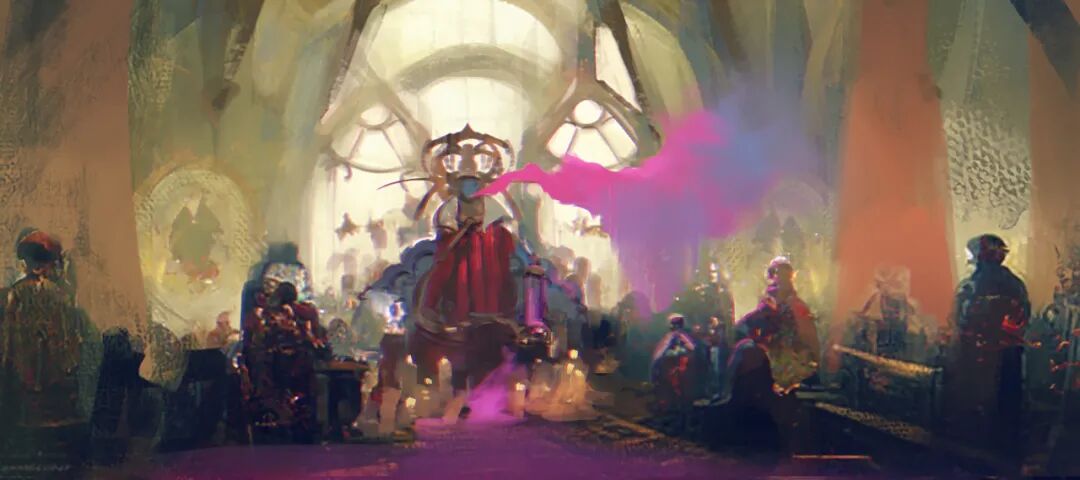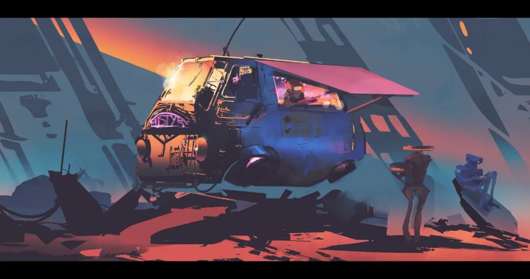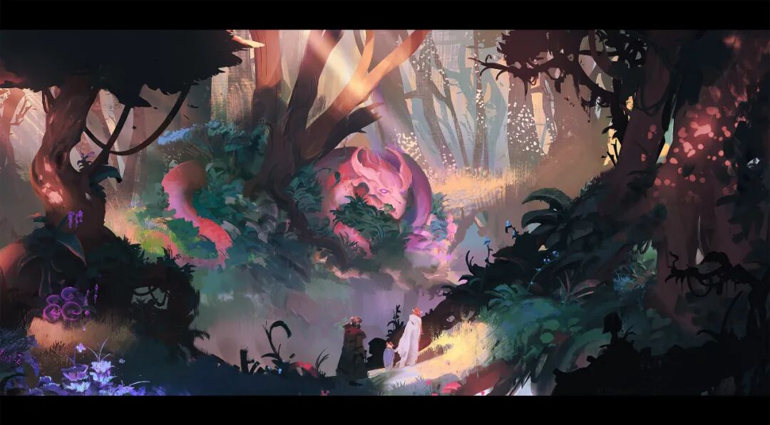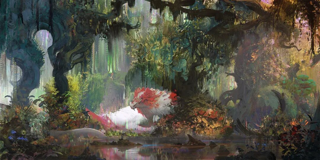 俄语等六国语言!作品擅长以高饱和的对比色创作,画面色彩运用如梦如幻,还擅长大笔触渲染,作品氛围十分谲诡绮丽,细节营造恰到好处。
