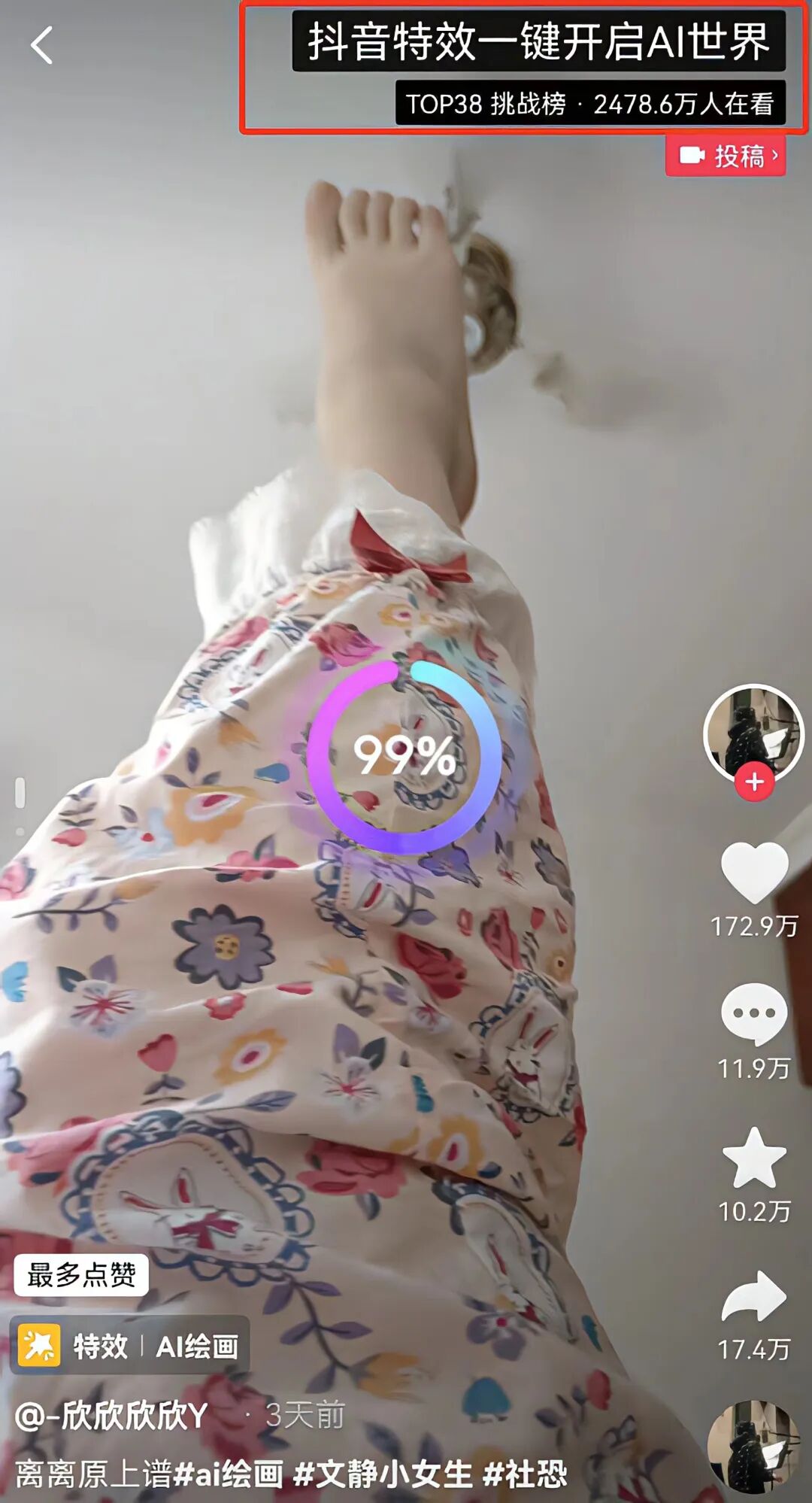 而事情的开始,只是一位抖音博主的脚以及她的碎花睡裤,在开启AI道具后,脚变成了肤白貌美的长发美女,睡裤变成了优雅古风碎花裙: