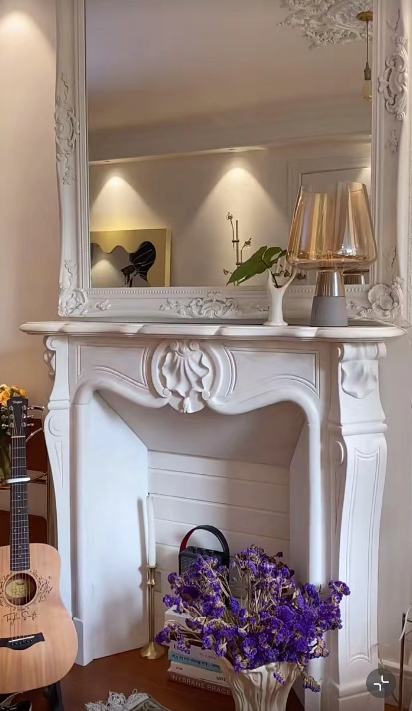 虽说是假壁炉,但提供氛围、作置物架还是很不错的,小姐姐在上面放了一面雕花镜子,便于出门前整理仪表。