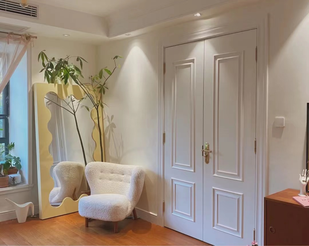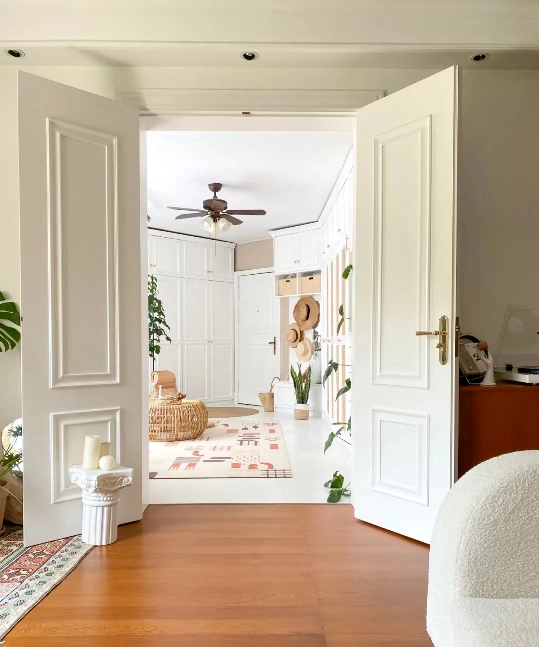 小编觉得真的很惊艳了,门上的线条弥补了玄关区域全是大白墙、无线条的不足,增添了法式元素。