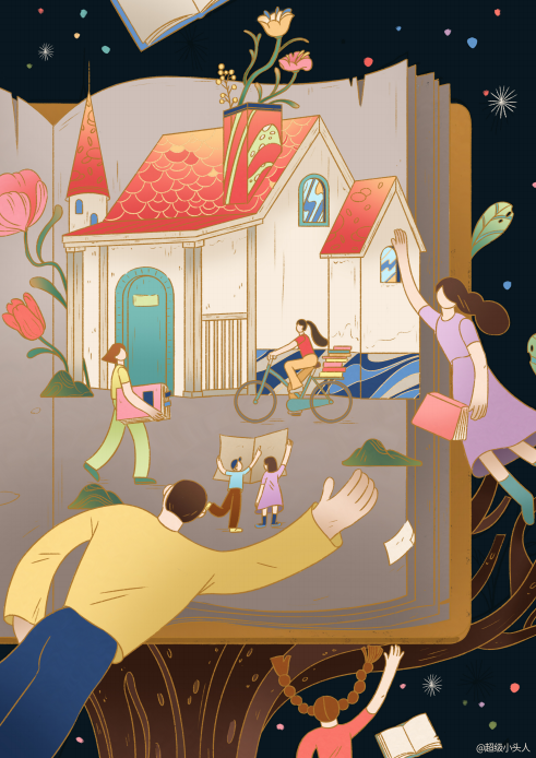 为“鲸字号书店”设计商业插画: