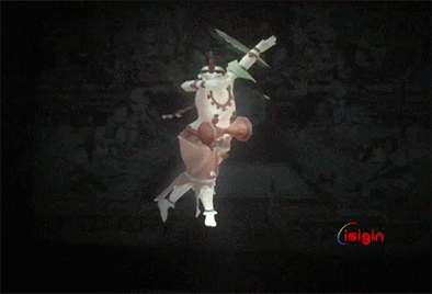 全息投影技术利用装置内部的投影机或显示屏与分光镜,将三维画面悬浮在实景的半空中成像,营造一种亦真亦幻的奇特效果,具有强烈的纵深感,真假难辨,配合人眼的视觉误差,进行集成制作出多角度、全方位的360°立体悬浮影像,可将成像独立展示,也可与实物相结合。