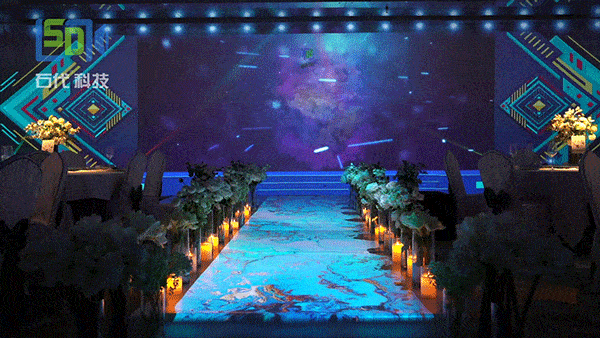 比如婚宴时,在5D光影宴会厅中能体验到古色古韵的中式场景,梦幻唯美的草坪场景,奇幻绚烂的星空场景,5D光影宴会厅中逼真的动态立体画面能为宾客和新人一同带来身临其境的全方位视听体验。