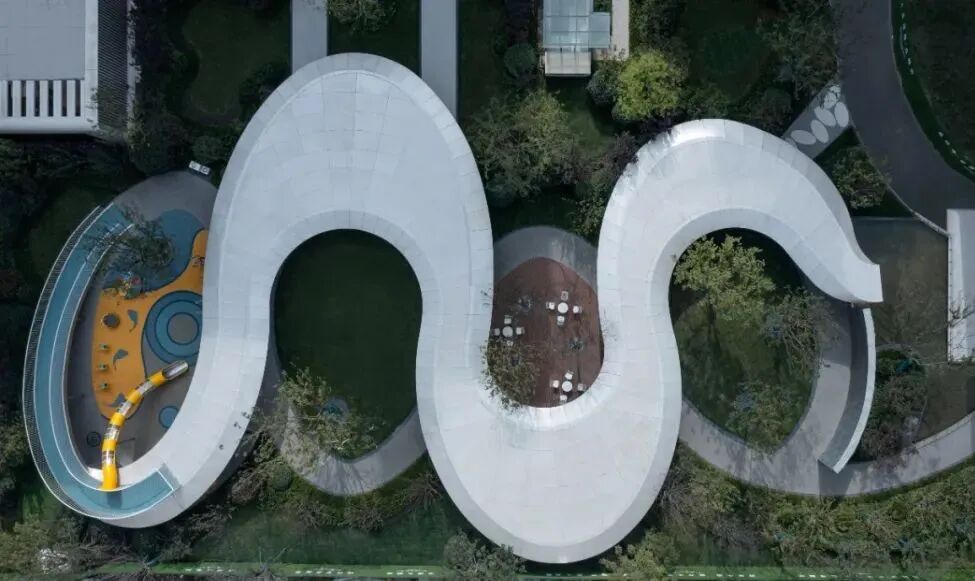 蛇形会客厅廊架应用“S“的形式,将功能复合在廊架下的各个空间中,预留大面积的户外活动空间,使得生活与自然完美融合,艺术感与功能性并存。