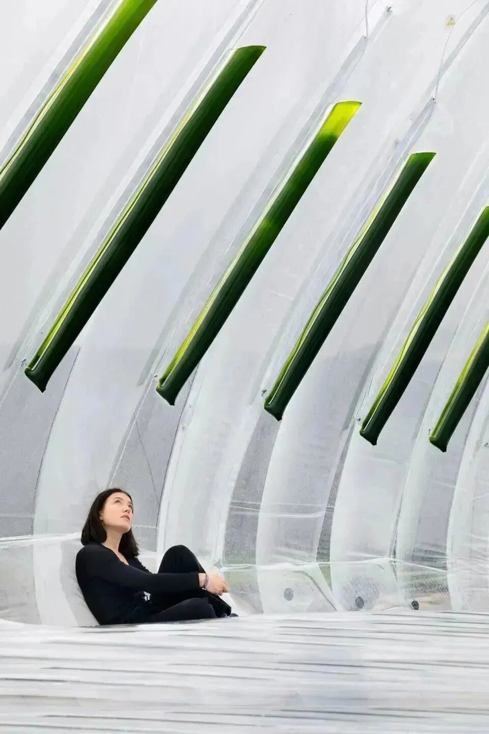 该项目鼓励游客(尤其是儿童)与构筑物直接互动,感受微藻类培养物净化空气的作用,同时将自身沉浸在不断有新鲜氧气产生的“泡泡”中。