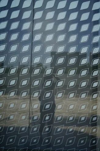 我们针对视线所及范围内的菱形图案进行了进一步的细化设计,形成丰富的近人尺度图案渐变。当我们凑近幕墙的时候,能进一步阅读到彩釉的图案细节。深化过程针对渐变图案细节进行了反复的调整和1:1打样核对,确保效果的真实性。