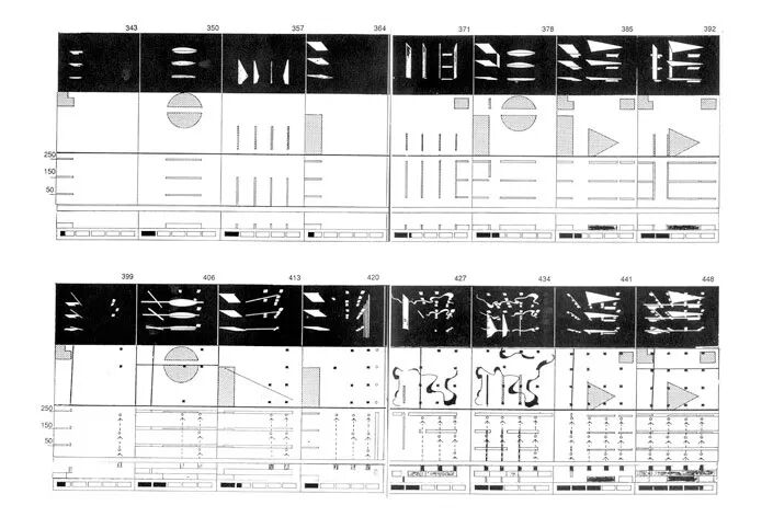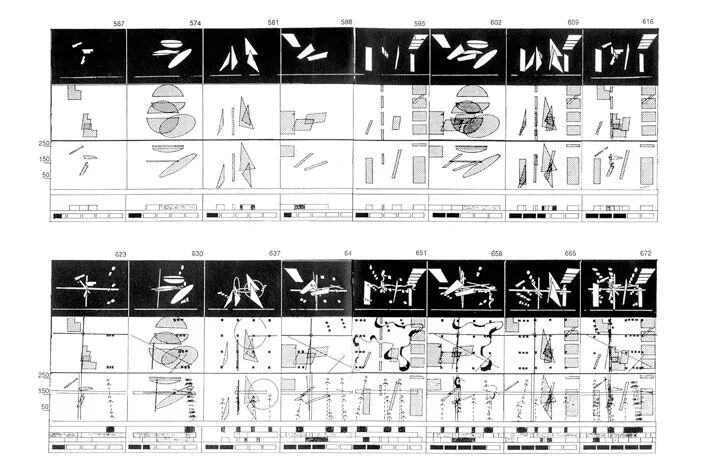 屈米在质疑建筑观念和惯例的同时,使用不常见的符号方式开发了一套连贯的作品:绘制序列和新闻照片,操纵图像来创造建筑事件。这些符号也表现出一种空间敏感性,让“阅读”图纸的体验更接近于旅行。