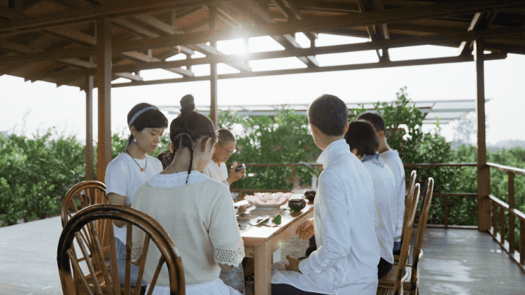 铁牛村的生活开始得很早,5:20起床,洗漱、简单的打扫后,6点刚过,年轻人们就相约进了果园,来到一处自己搭建的“茶庐”,那里视野开阔,最适合晨练和早茶。