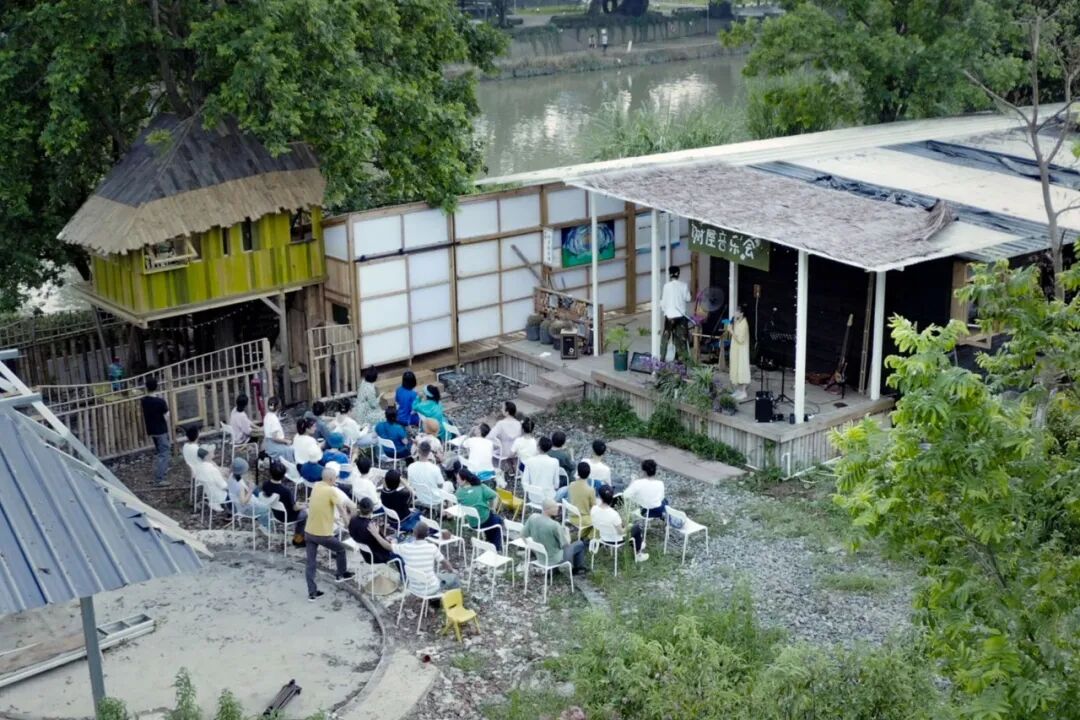 果园里原本就有90年代末开起来的第一间农家乐“铁牛寨”,但随着乡村文旅升级,渐渐无法吸引游客,落寞已久,大家就在这个基础上,做了简单的建筑改造。