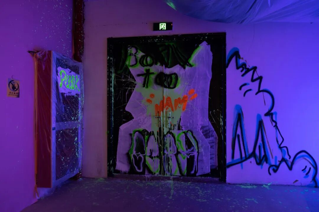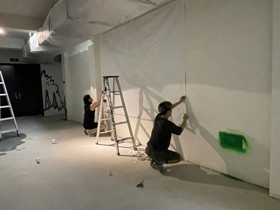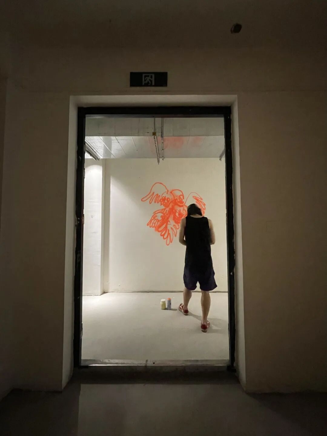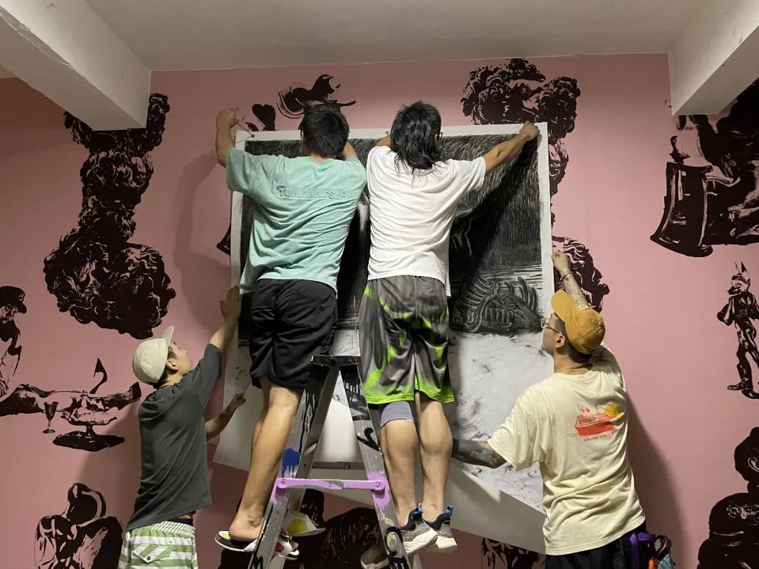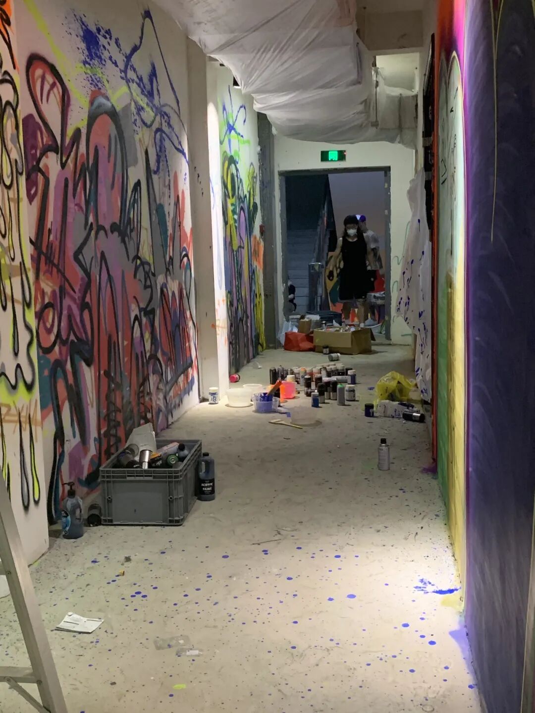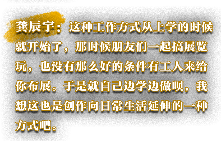 陈镒晗在布展期间的涂鸦以及综合材料创作