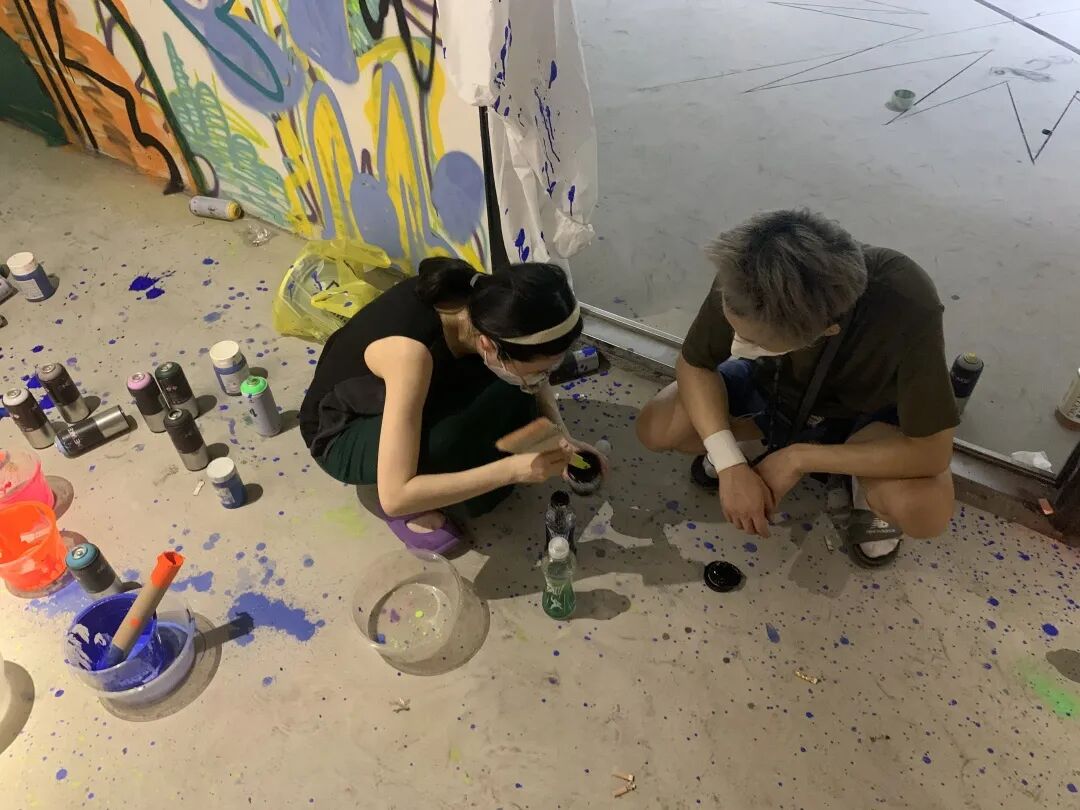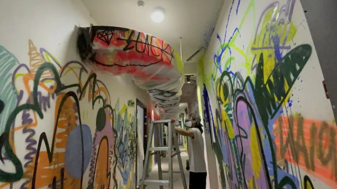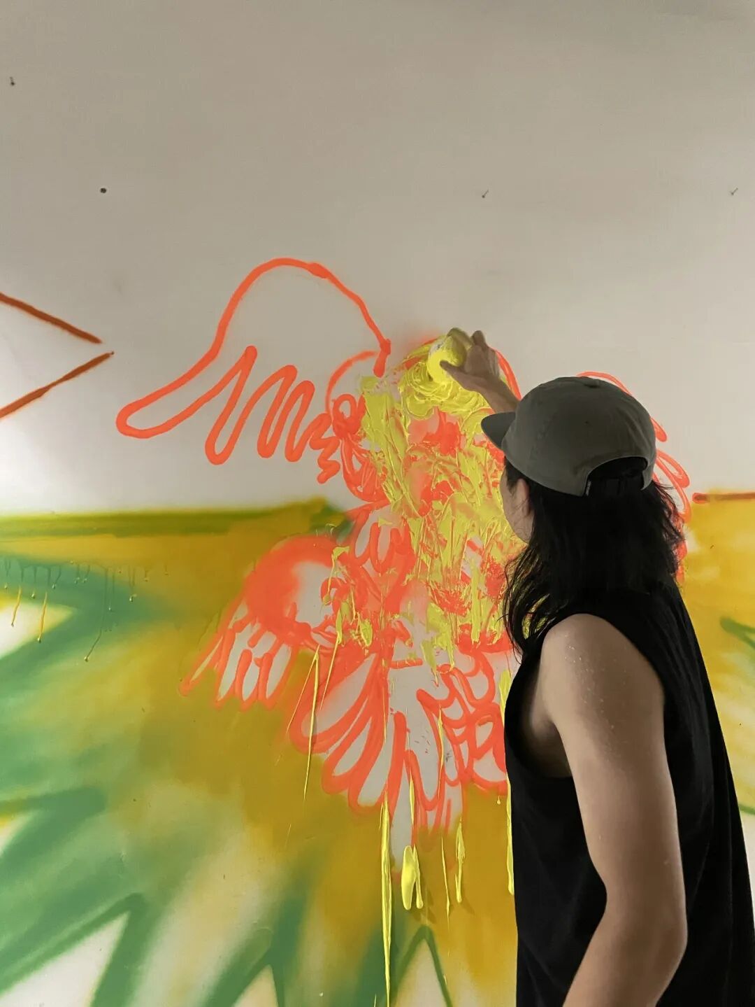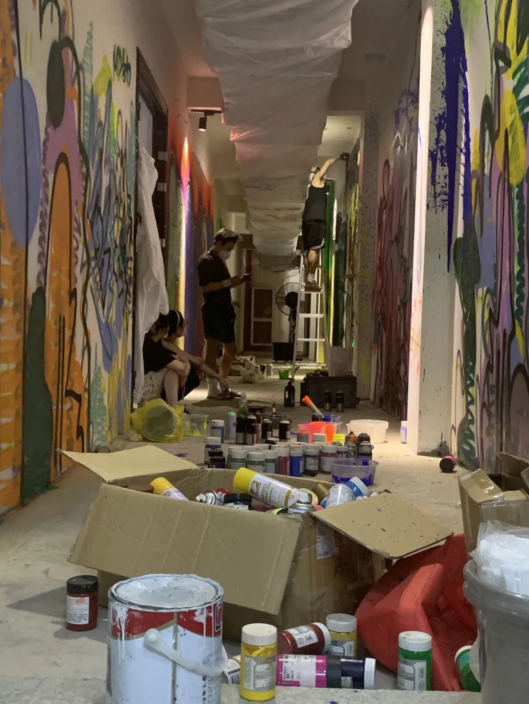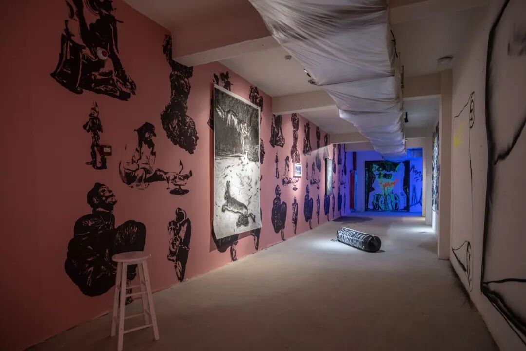 陈镒晗在布展期间的涂鸦以及综合材料创作