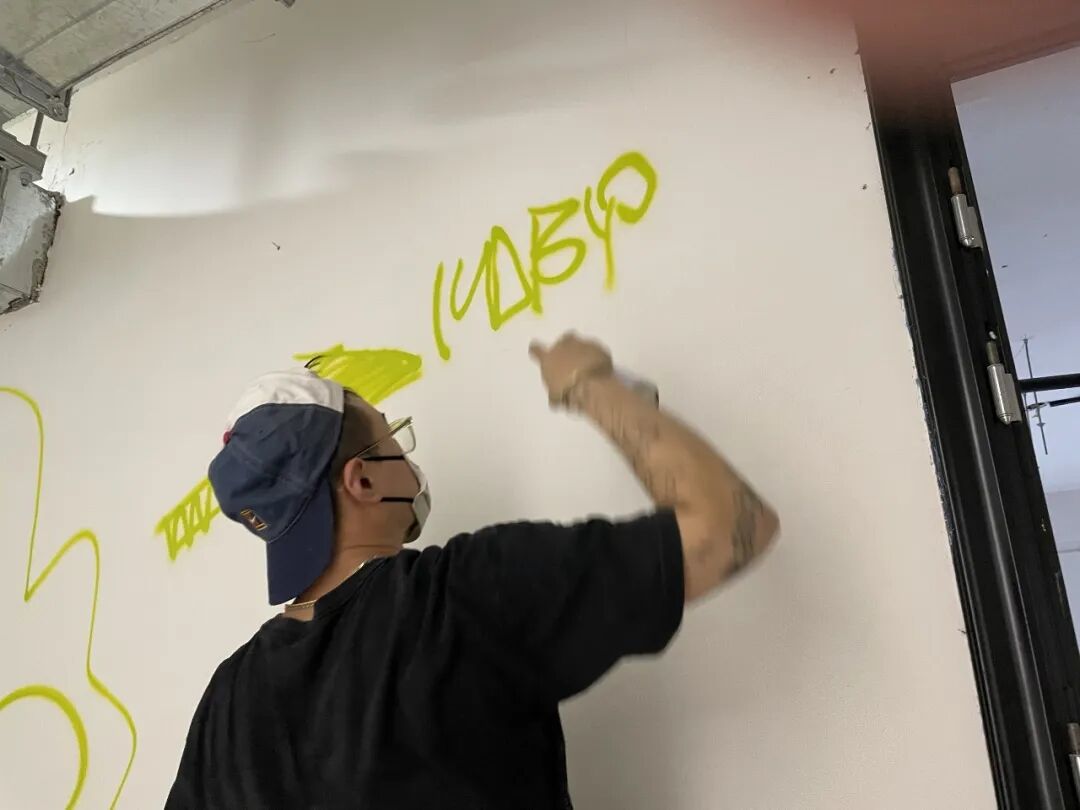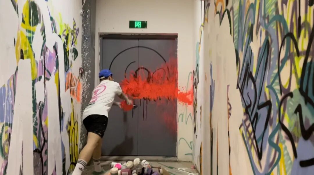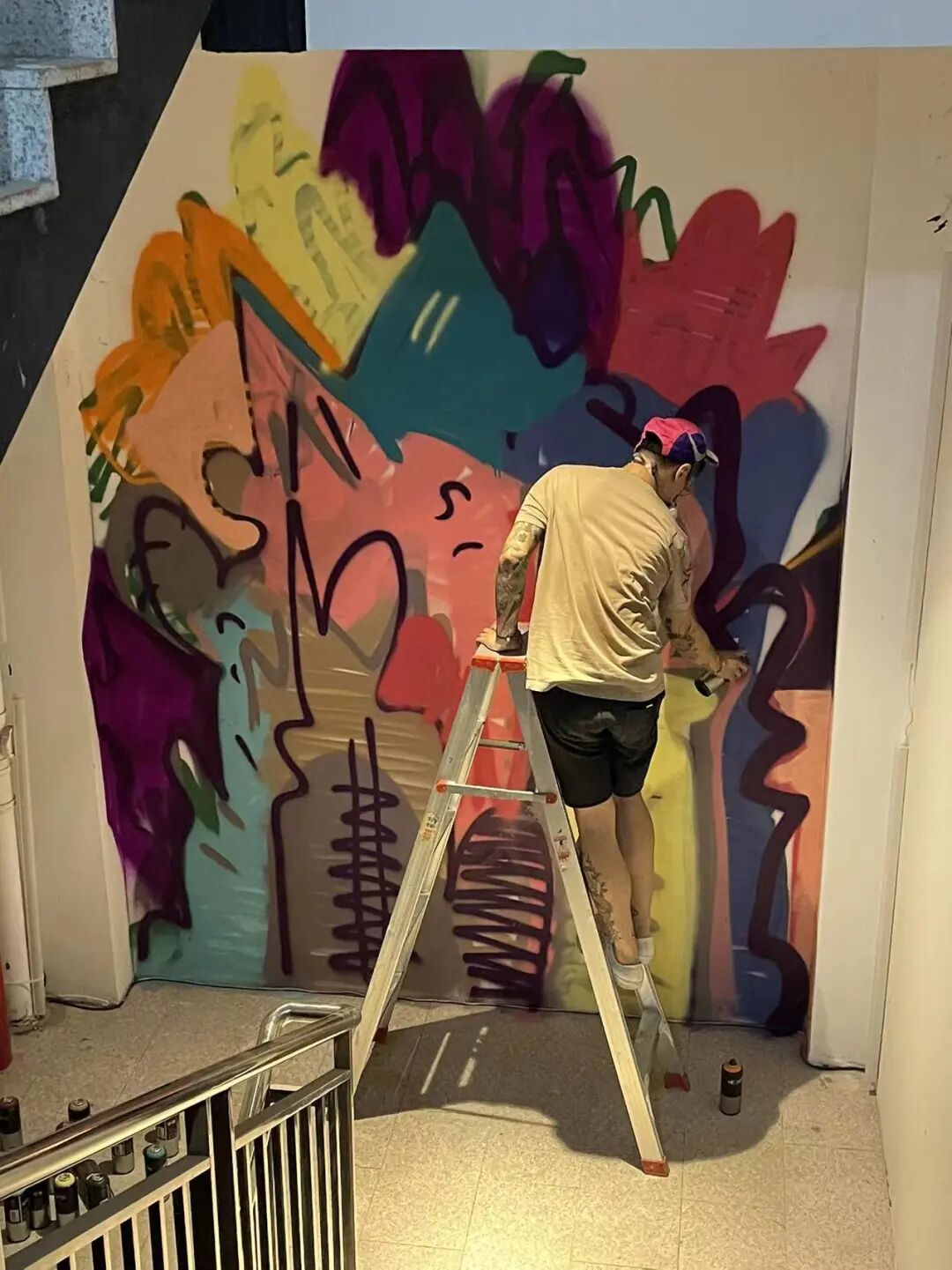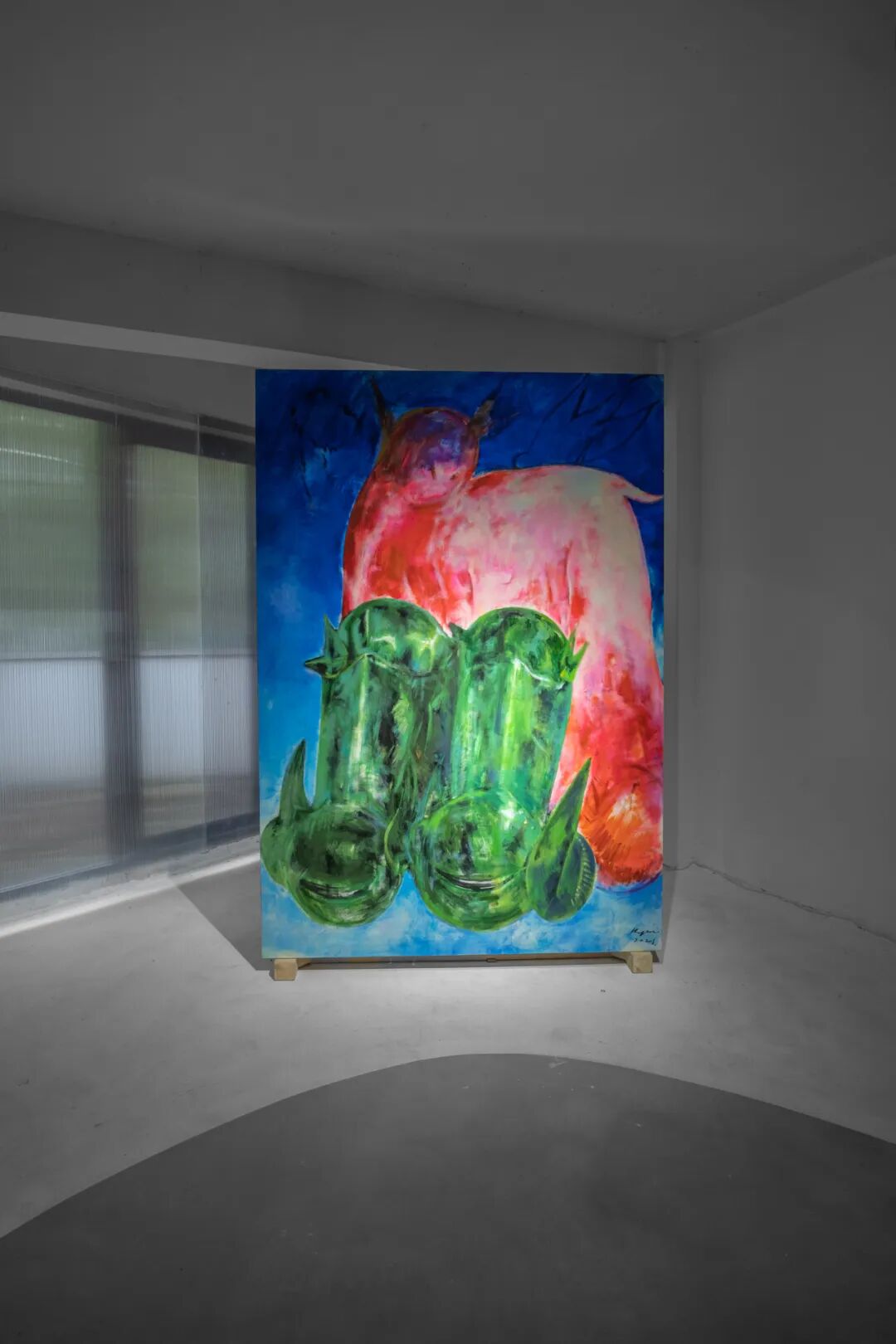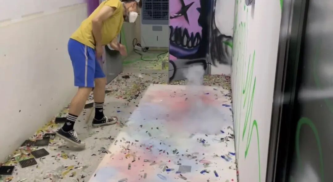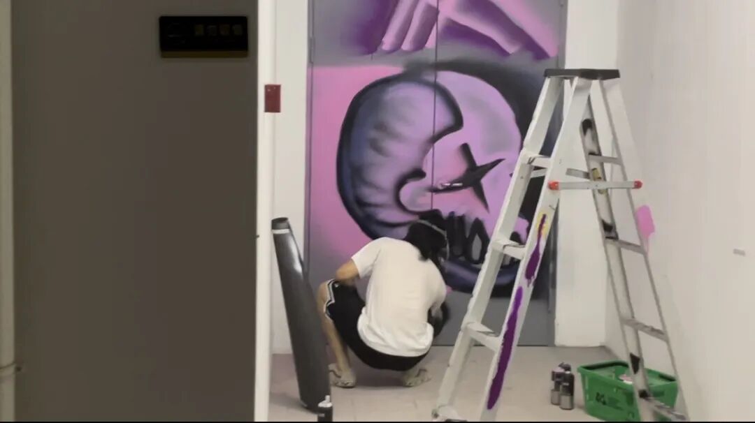 陈镒晗在布展期间的涂鸦以及综合材料创作