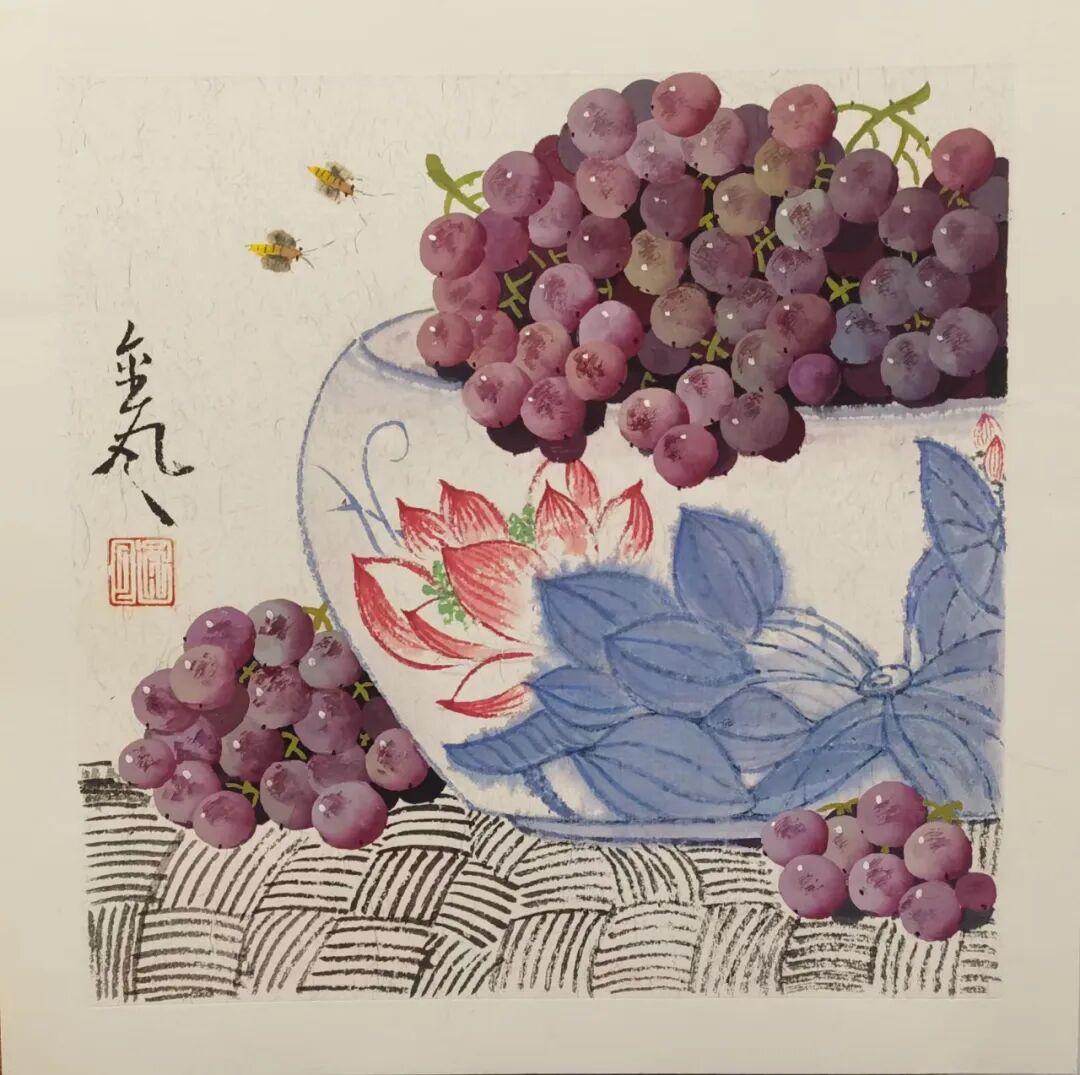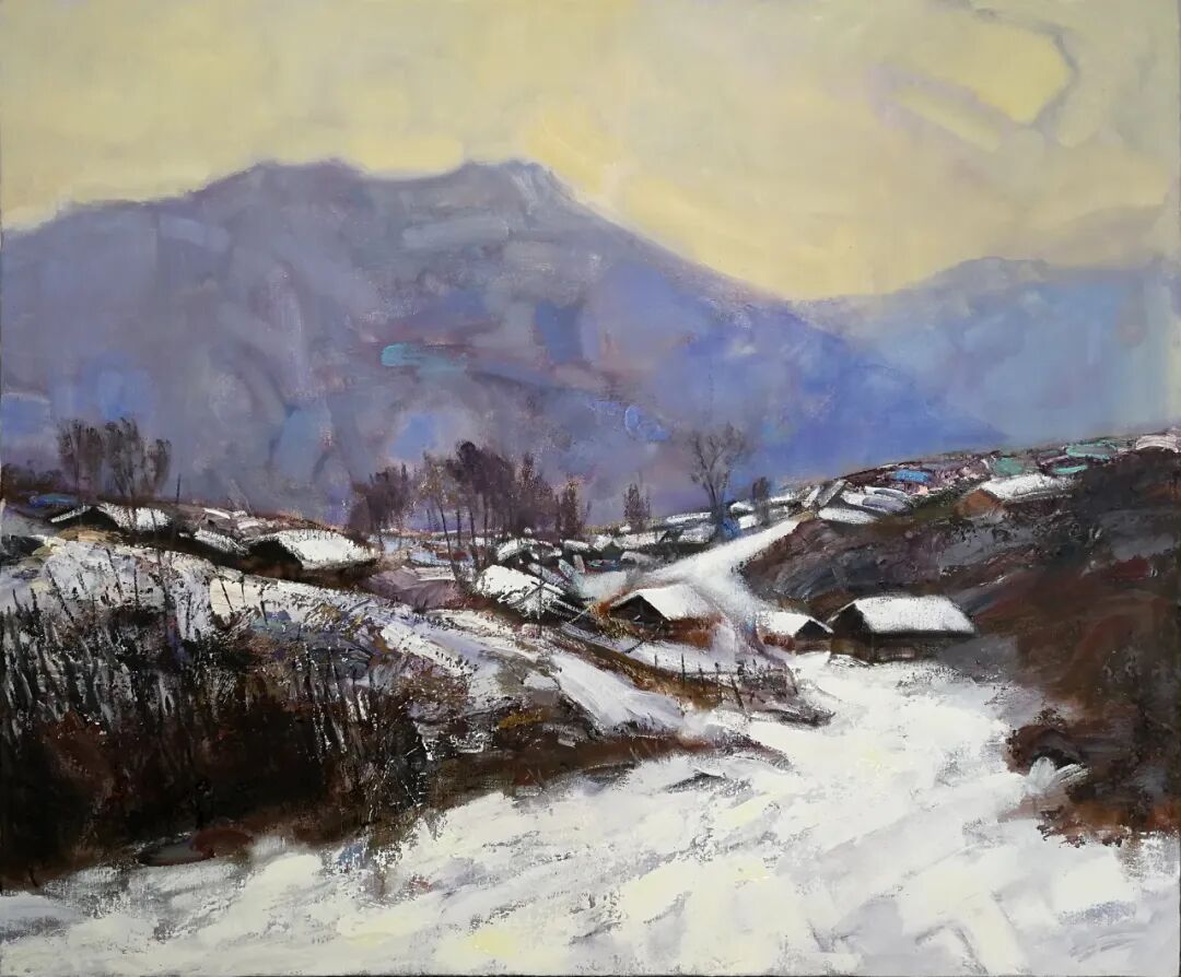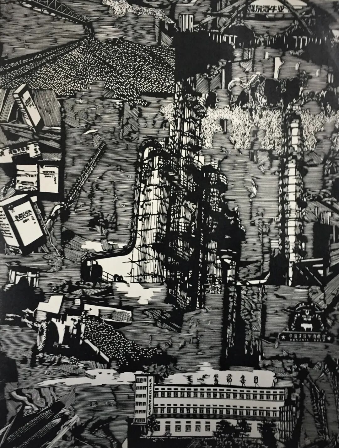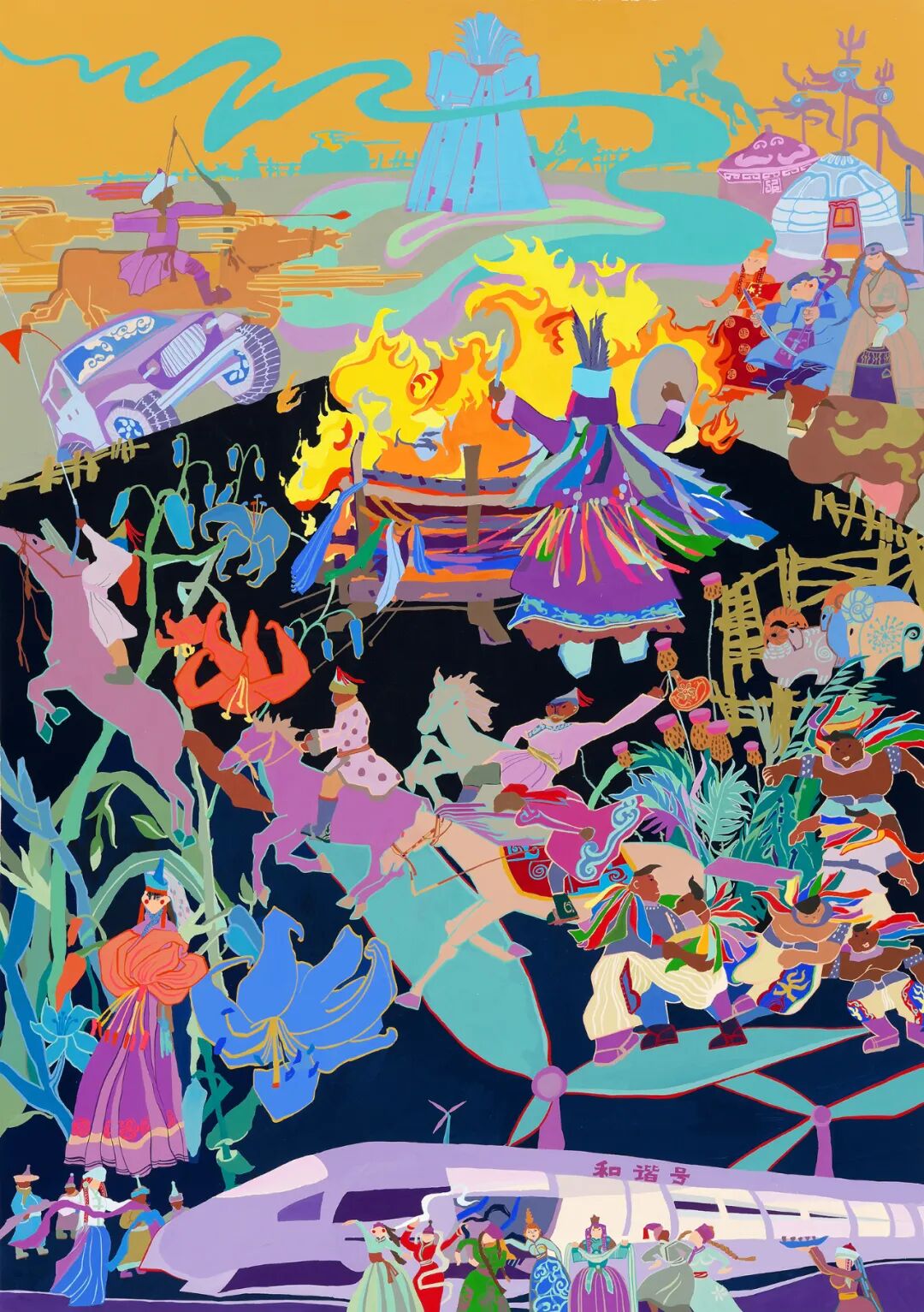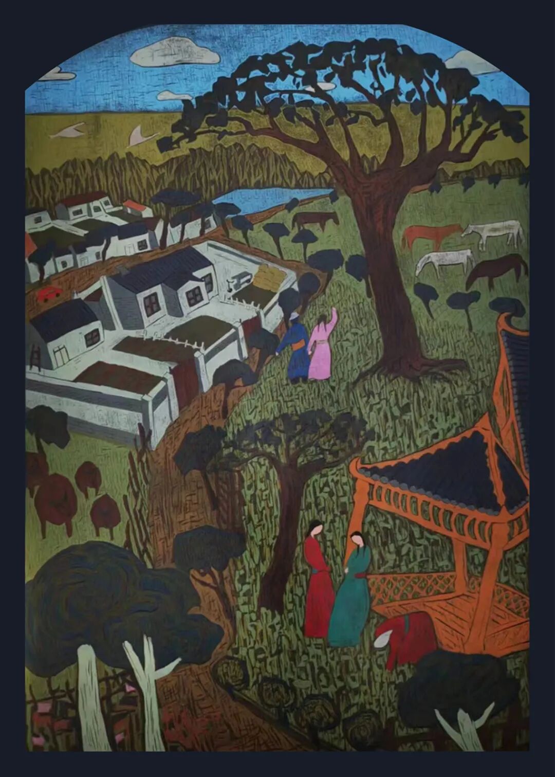陈文丽《多彩乡村—浩日彦艾勒嘎查》版画