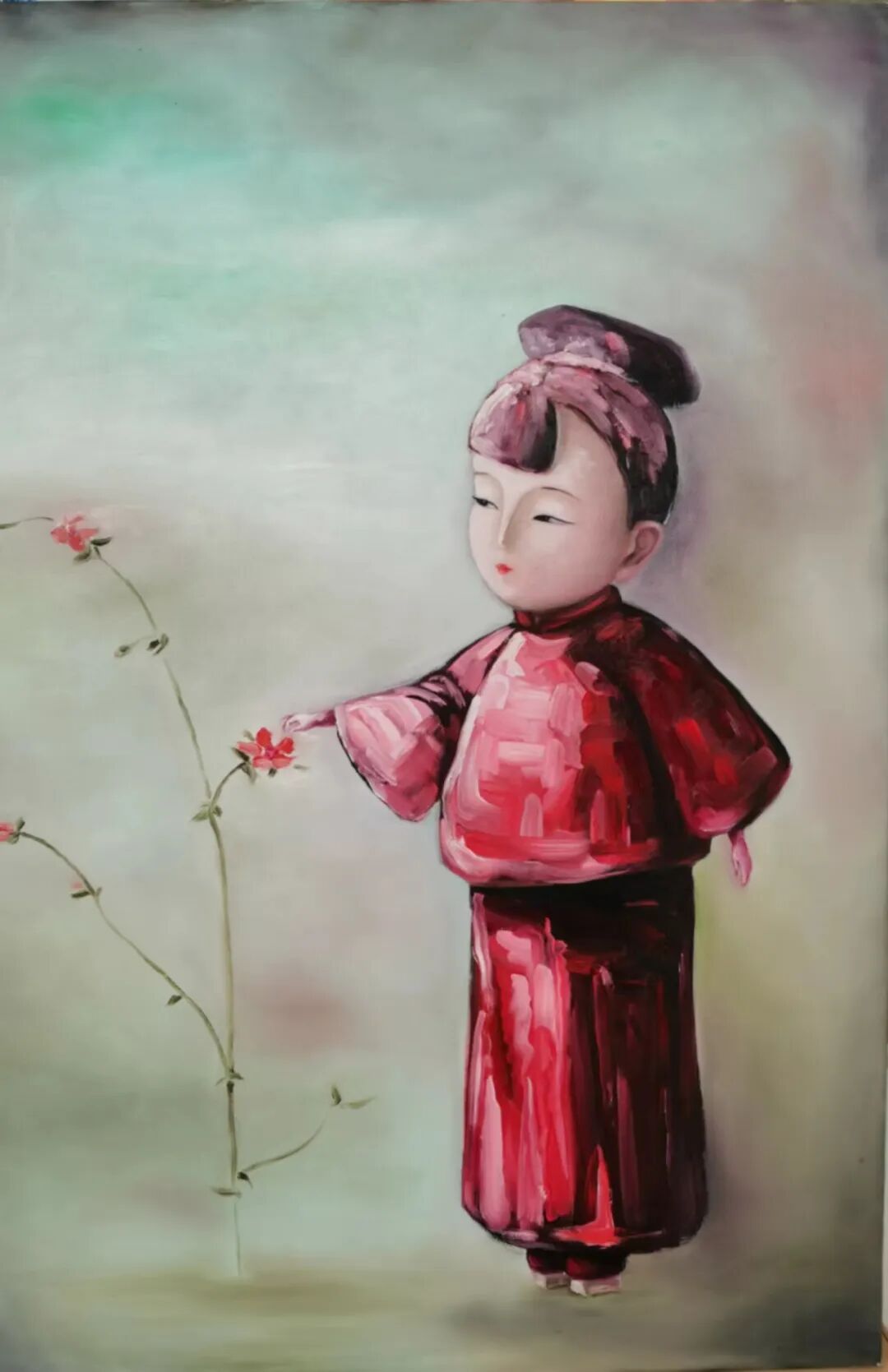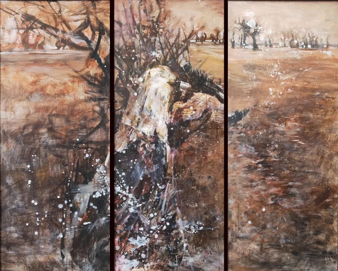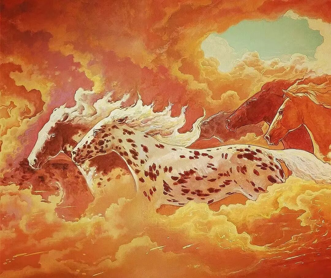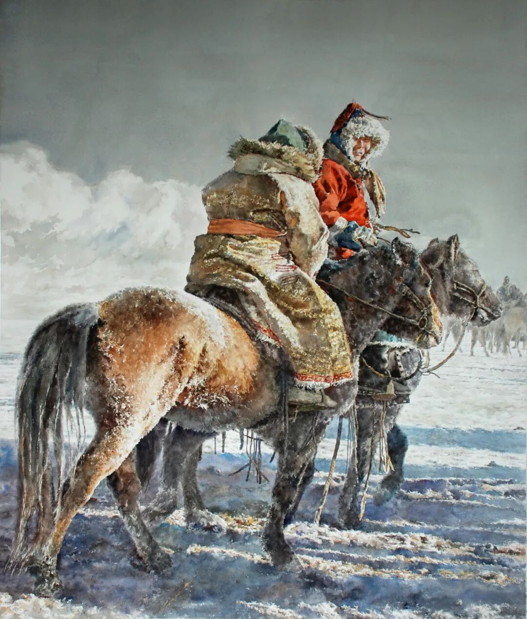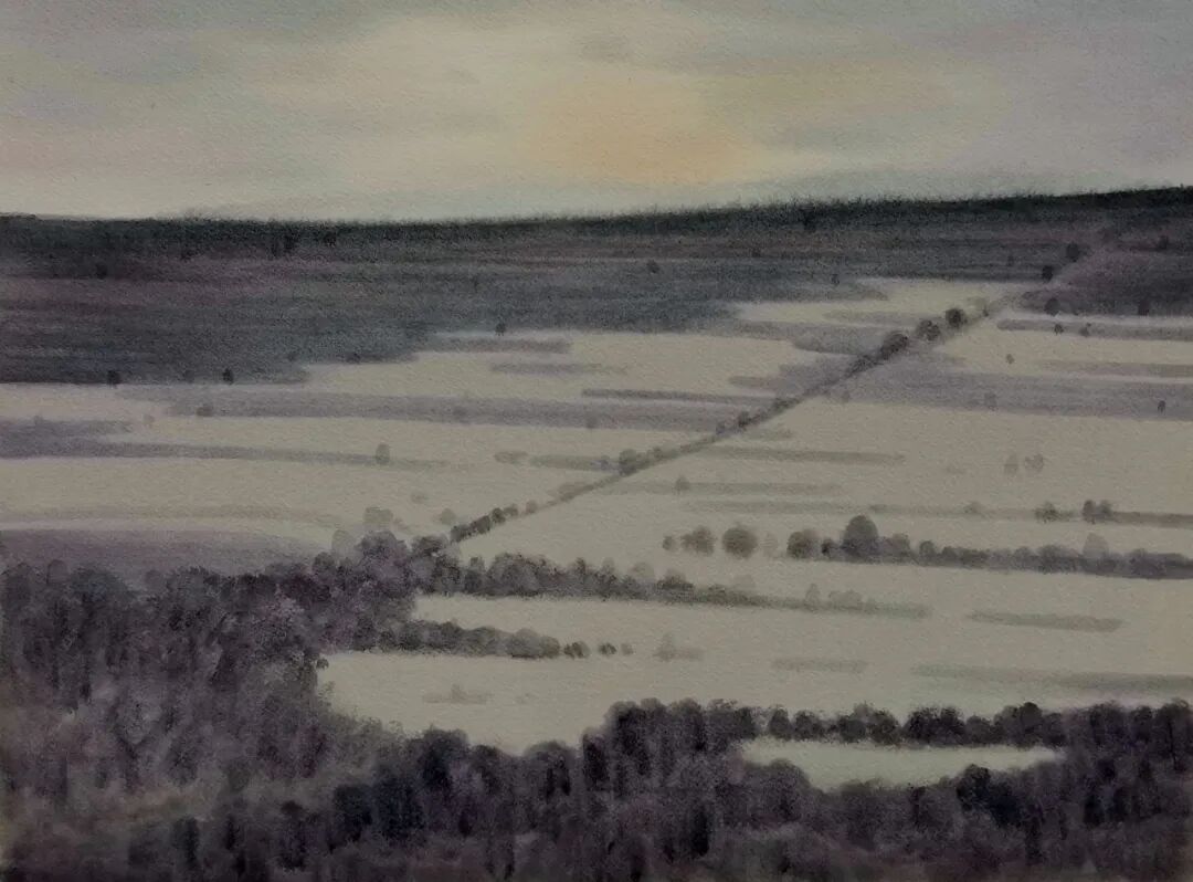 陈文丽《多彩乡村—浩日彦艾勒嘎查》版画