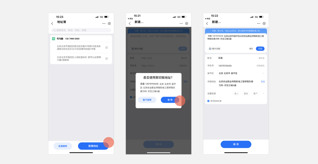 回头再看看菜鸟「地址自动填充」的案例:当系统检测到你复制的信息,它并没有自作主张的,直接帮你填在表格里,而是先问问你:是否使用当前复制的地址。它这样做的目的,是在把决策权交给用户。