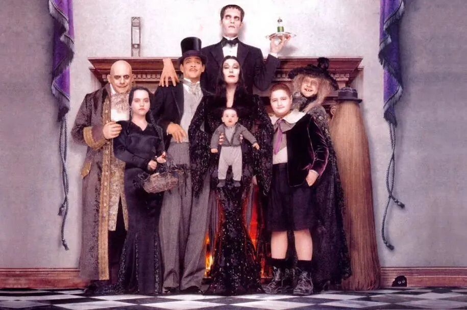 对于哥特类型的影视作品,大家最印象深刻的无疑就是《亚当斯一家》。哥特式家族的阴郁神秘,不止表现在不见白昼的氛围感、暗黑的古堡和代表着死亡的墓地,更多的印象则是来自于他们的穿着妆容,甚至引起一轮轮的哥特风时尚热潮。