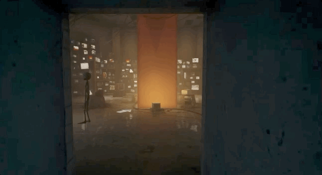 进入一个满是电视的房间,电视屏幕播放着末日世界景象,中央的金色柱子显示“DRUM N BASS”(鼓打贝斯,一种电子舞曲风格)。背景乐是令人不安的颤音。